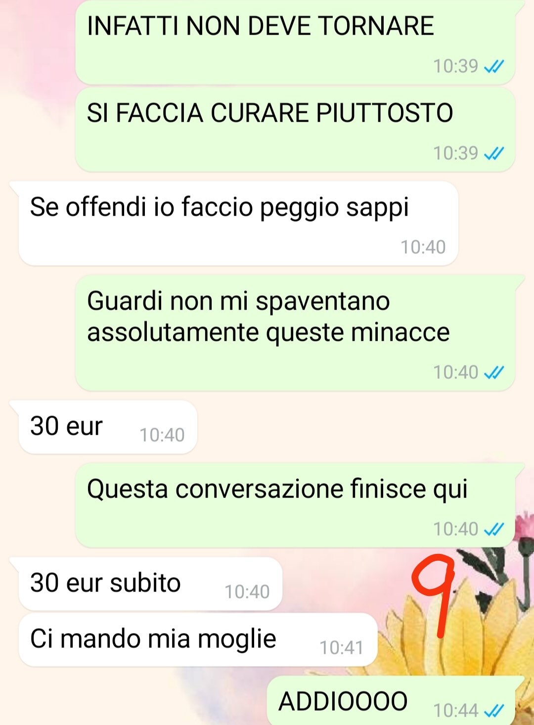 Nel suo messaggio, il cliente ha utilizzato toni che Alessia definisce esagerati, al punto da metterla in difficoltà non solo come lavoratrice, ma anche come persona. La nostra fan ha voluto condividere la conversazione perché, nonostante la pazienza e l’abitudine a gestire tante situazioni complesse nel mondo della ristorazione, non le era mai capitato nulla di simile.