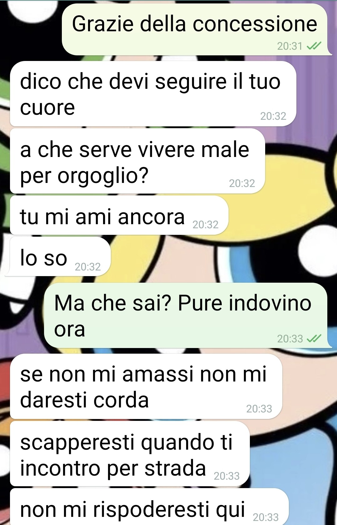 Tuttavia, racconta che con il passare dei giorni ha cominciato a rispondere ai suoi messaggi, a parlargli e – suo malgrado – a mettere in discussione alcune delle sue certezze. A farle vacillare la decisione è stato anche un messaggio particolare: una poesia scritta da lui, che ha risvegliato emozioni sopite e ha riaperto una ferita che sembrava già chiusa.