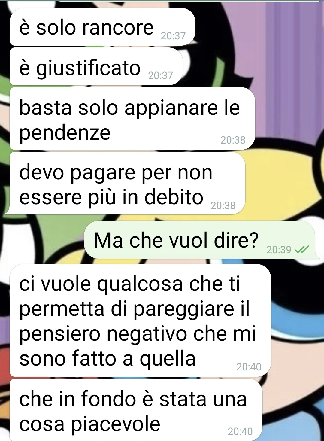 Le parole di lui – che dopo essersi improvvisato poeta sembrerebbe aver anche proposto una soluzione alla sua rabbia – hanno avuto l’effetto opposto. Non solo non hanno placato il dolore, ma hanno rafforzato in lei la convinzione di non voler più accettare nulla da parte sua. La nostra follower si chiede come abbia fatto a legarsi a una persona così e conclude con la consapevolezza che merita di meglio.