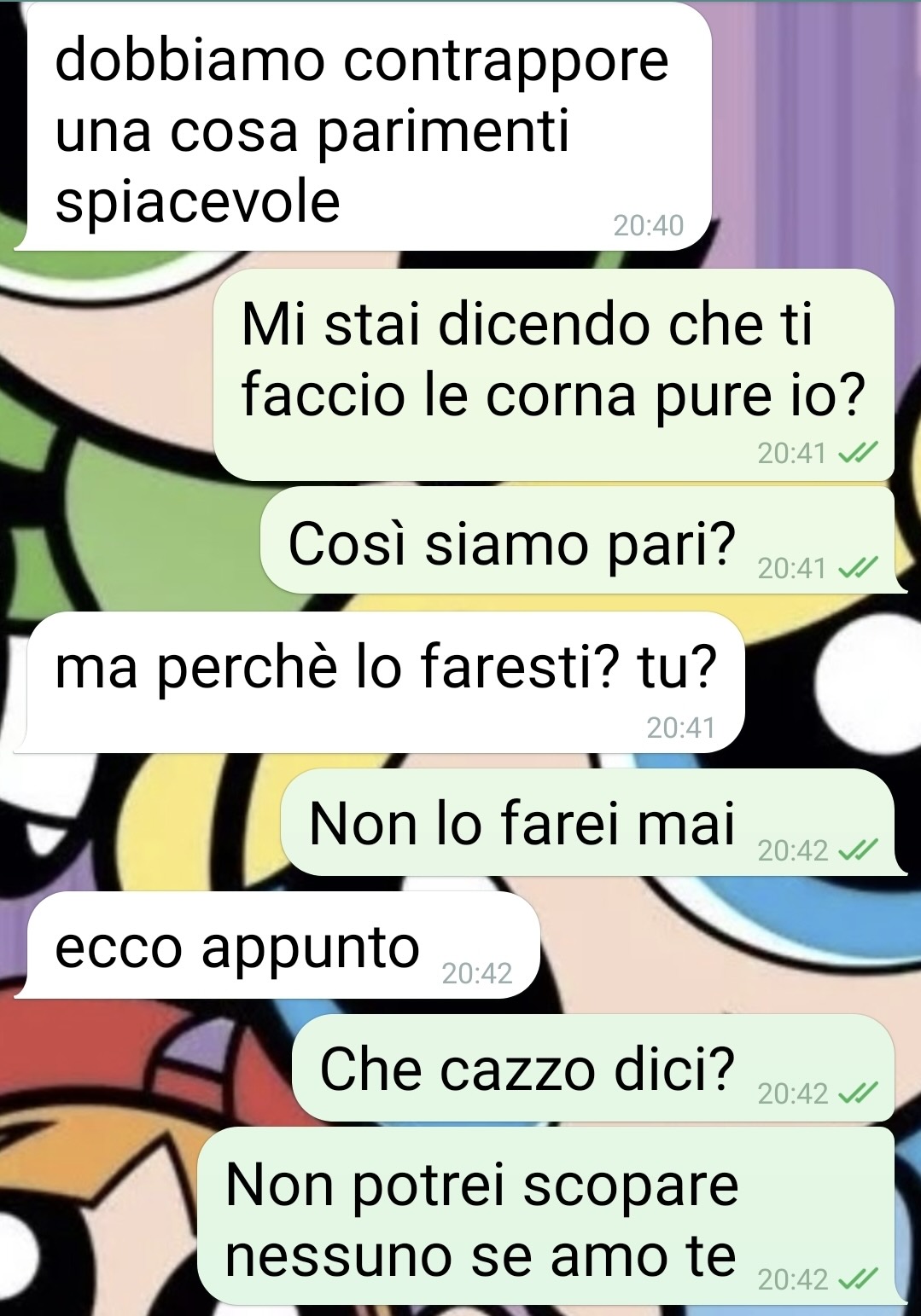 Ammette di aver pensato, per un attimo, di rivederlo. Di incontrarlo per parlare faccia a faccia, magari con la speranza di capire, di ottenere una spiegazione, o forse di chiudere in modo diverso. Ma poi racconta di aver letto un’ultima chat che ha fatto crollare ogni dubbio e l’ha riportata bruscamente alla realtà.
