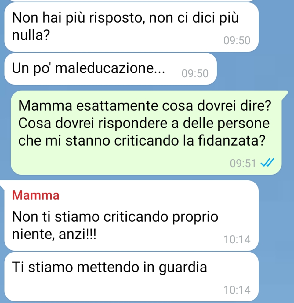 Il nostro fan condivide una storia personale intensa e carica di emozioni, che nasce da un amore profondo e sincero ma che si scontra, purtroppo, con il giudizio e la chiusura da parte della sua famiglia d’origine.