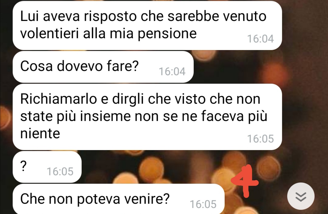 Ciao mi chiamo Loredana e quella che vi invio è una chat intercorsa tra me e la mia adorata mammina. Non abbiamo mai avuto un rapporto idilliaco purtroppo, ma questa volta purtroppo abbiamo toccato davvero il fondo. Cioè lo ha toccato lei! Eravamo al pranzo per festeggiare la sua pensione e dopo due ore in cui ho retto davvero l’impossibile, credetemi, ad un certo punto non ce l’ho più fatta e sono sgattaiolata via. Quando mia madre se ne è accorta mi ha subito scritto chiedendomi di tornare indietro. Io naturalmente non ne avevo nessuna intenzione! Vi starete chiedendo perché, cosa può essere successo a questo pranzo di tanto grave. Beh, ve lo lascio scoprire leggendo. Ciò che mi lascia senza parole è che secondo mia mamma lei non ha nessuna colpa e continua a non comprendere il mio comportamento e a non capire il problema. Io capisco che i rapporti sono degli equilibri difficili da mantenere a più livelli, ma una mamma non dovrebbe essere sempre dalla parte di una figlia? Specie in un caso come questo? O è pretendere troppo?