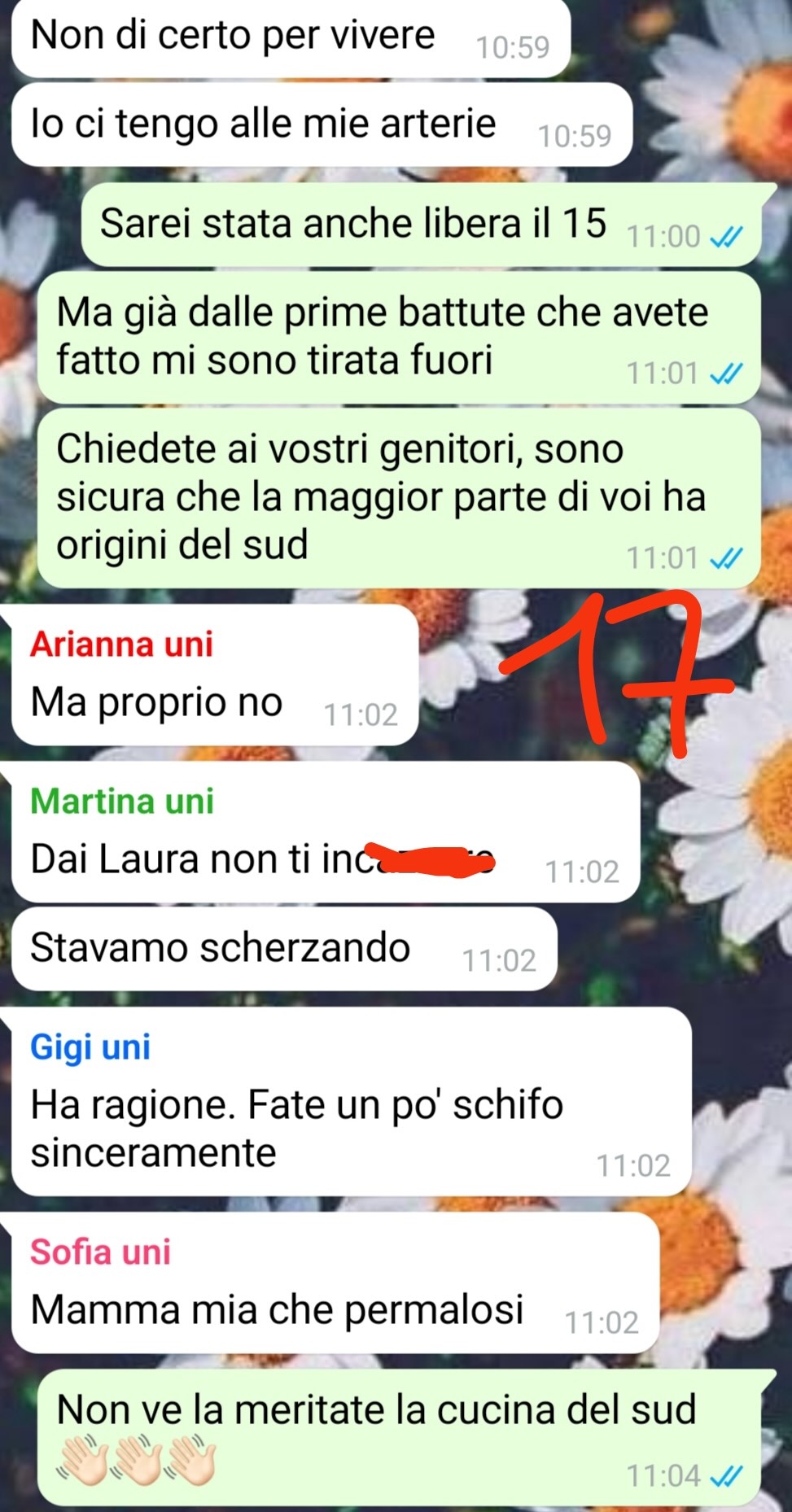 In un primo momento, leggendo solo il nome, Laura ha pensato che potesse trattarsi di un’idea simpatica e goliardica. Tuttavia, la sua percezione è cambiata quando ha letto le conversazioni tra i partecipanti. I messaggi scambiati all’interno del gruppo hanno modificato completamente il modo in cui vedeva la situazione, portandola a rivalutare il comportamento di alcuni compagni.