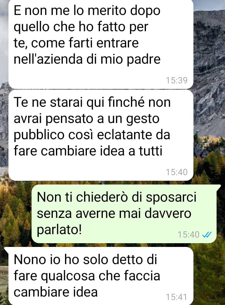 La conversazione allegata mostra in che modo la situazione è degenerata e quanto le pretese della compagna siano, secondo lui, totalmente fuori luogo. Il nostro follower si dice stanco di dover continuamente sopportare reazioni spropositate e comportamenti che considera ingiustificabili, arrivando a chiedere a chi legge: come avreste reagito voi?