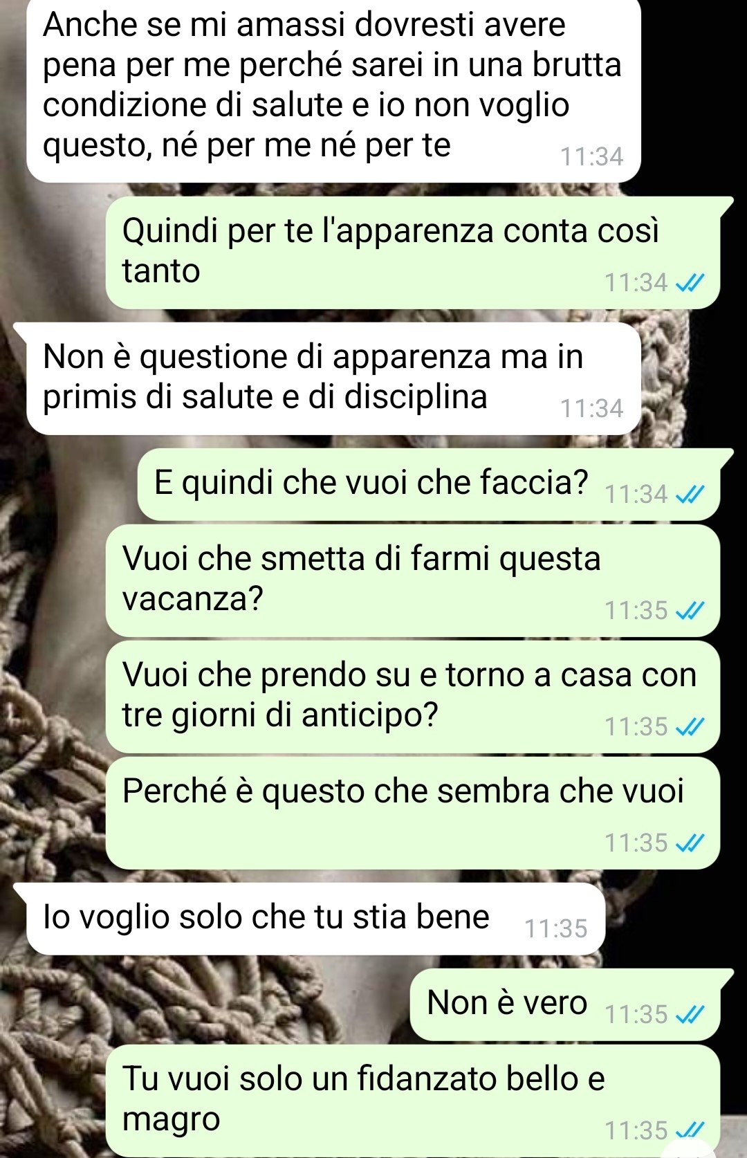 Durante il soggiorno, mentre si godeva la città e tutto ciò che ha da offrire — dai paesaggi al cibo, passando per l’atmosfera vivace — ha avuto una discussione con la sua ragazza. Secondo quanto racconta, il motivo iniziale del confronto gli è sembrato del tutto sproporzionato rispetto alla reazione ricevuta. Non si trattava di un evento particolare o di un gesto provocatorio, ma di una semplice foto: un’immagine di una pizza, scattata e inviata per condividere con lei un momento di piacere culinario e, in qualche modo, includerla nella sua esperienza anche a distanza.