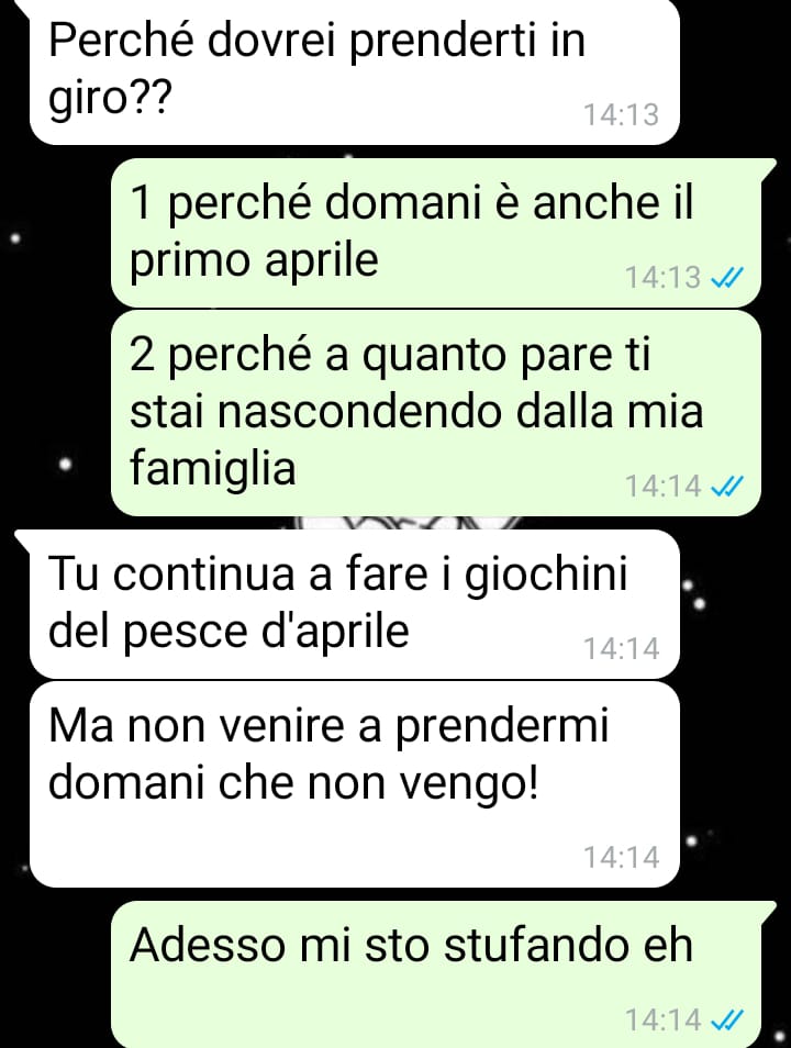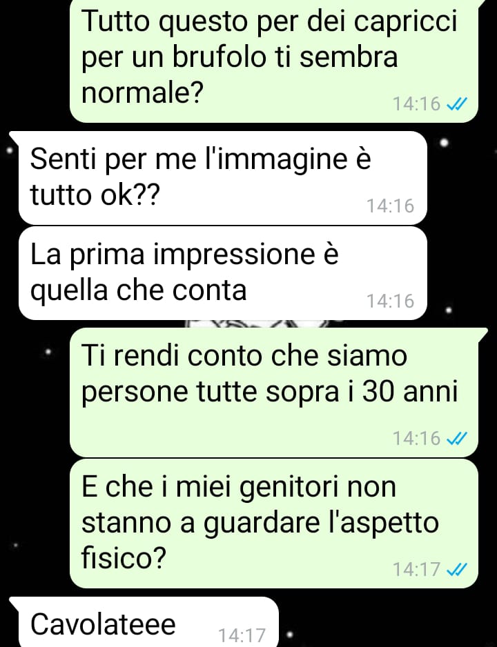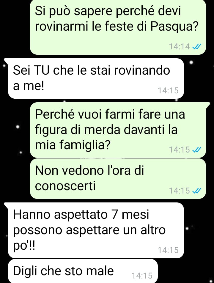 Tuttavia, nella mattina precedente il pranzo di Pasquetta, ha scritto alla fidanzata per confermare che sarebbe passato a prenderla prima dell’ora di pranzo, in modo da arrivare tutti insieme in campagna. Ma di colpo lei gli ha risposto di non voler più partecipare. Quello che lo ha lasciato senza parole non è tanto il cambio di programma quanto ciò che c’era dietro: da come si legge nella chat, sembra che ci siano ragioni inaspettate o poco chiare che hanno spinto la ragazza a tirarsi indietro all’ultimo momento.