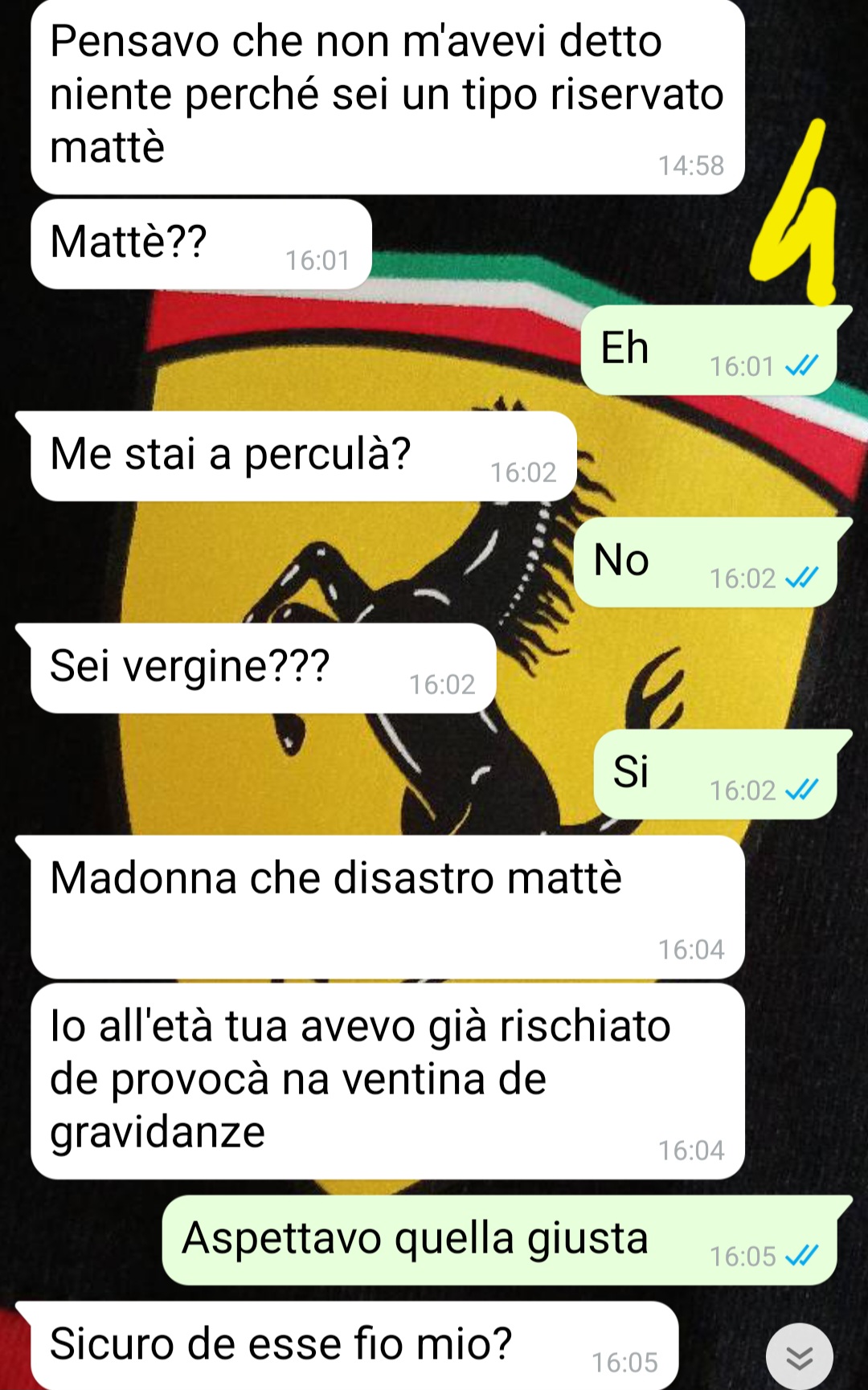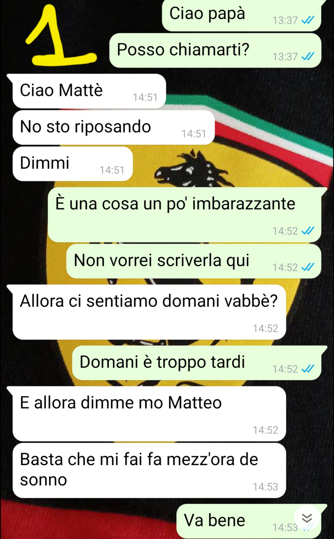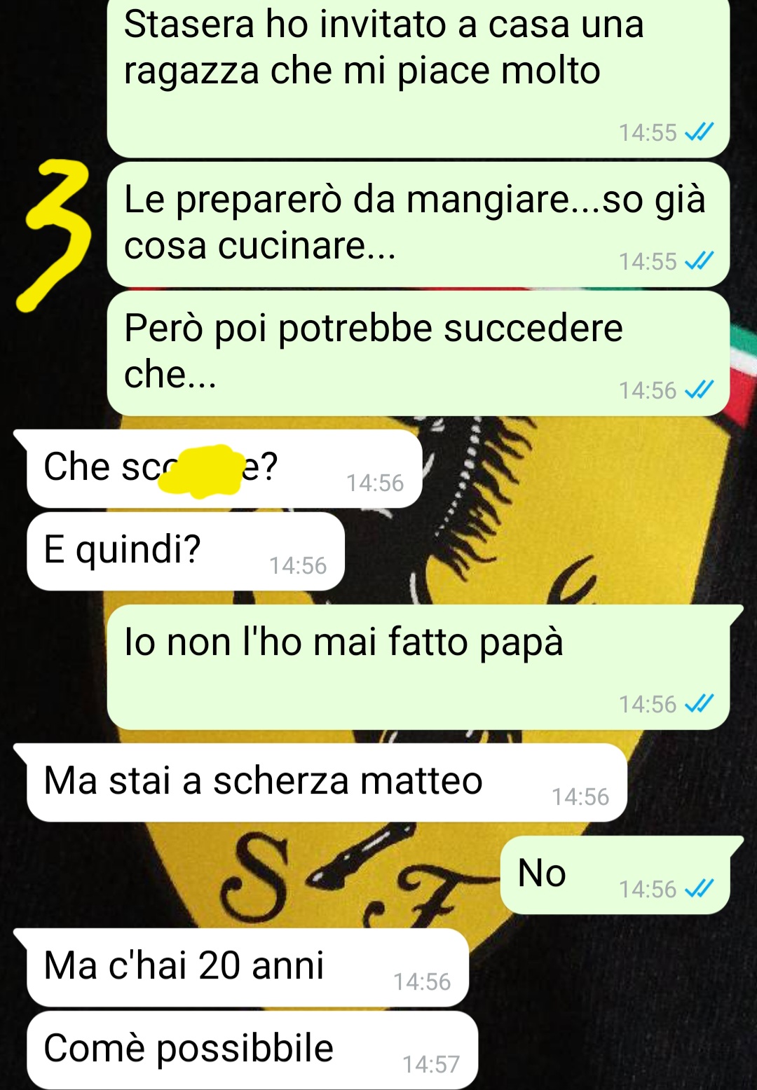 Ciao ragazzi mi chiamo Matteo e per mandarvi questa chat sto cercando di superare la vergogna…lo faccio solo perché credo che qualcuno possa aver bisogno di sentirsi meno solo, io mi ci sento da un po’ e vorrei aiutare gli altri ragazzi che hanno vissuto quello che sto vivendo io. Ho vent’anni e ho scritto a mio papà perché quella sera, forse, avrei fatto l’amore per la prima volta….ero spaventato, avevo l’ansia e non sapevo bene come comportarmi…avevo paura di chiedere un consiglio agli amici perché non sono mai riuscito a dire loro la verità…Non volevo andare a letto con una persona a caso e nemmeno farlo con una ragazza che magari non ricambiavo. perché sarebbe stata una presa in giro. Ho aspettato per tanto tempo quella giusta. che mi faceva battere il cuore…Io abito da solo nella casa che era di mio nonno e studio. Mio padre lo vedo poco, mia mamma di più.  Con lui non ho mai avuto un rapporto bellissimo ma comunque c’è sempre stato…solo che questa volta non mi ha aiutato, anzi….