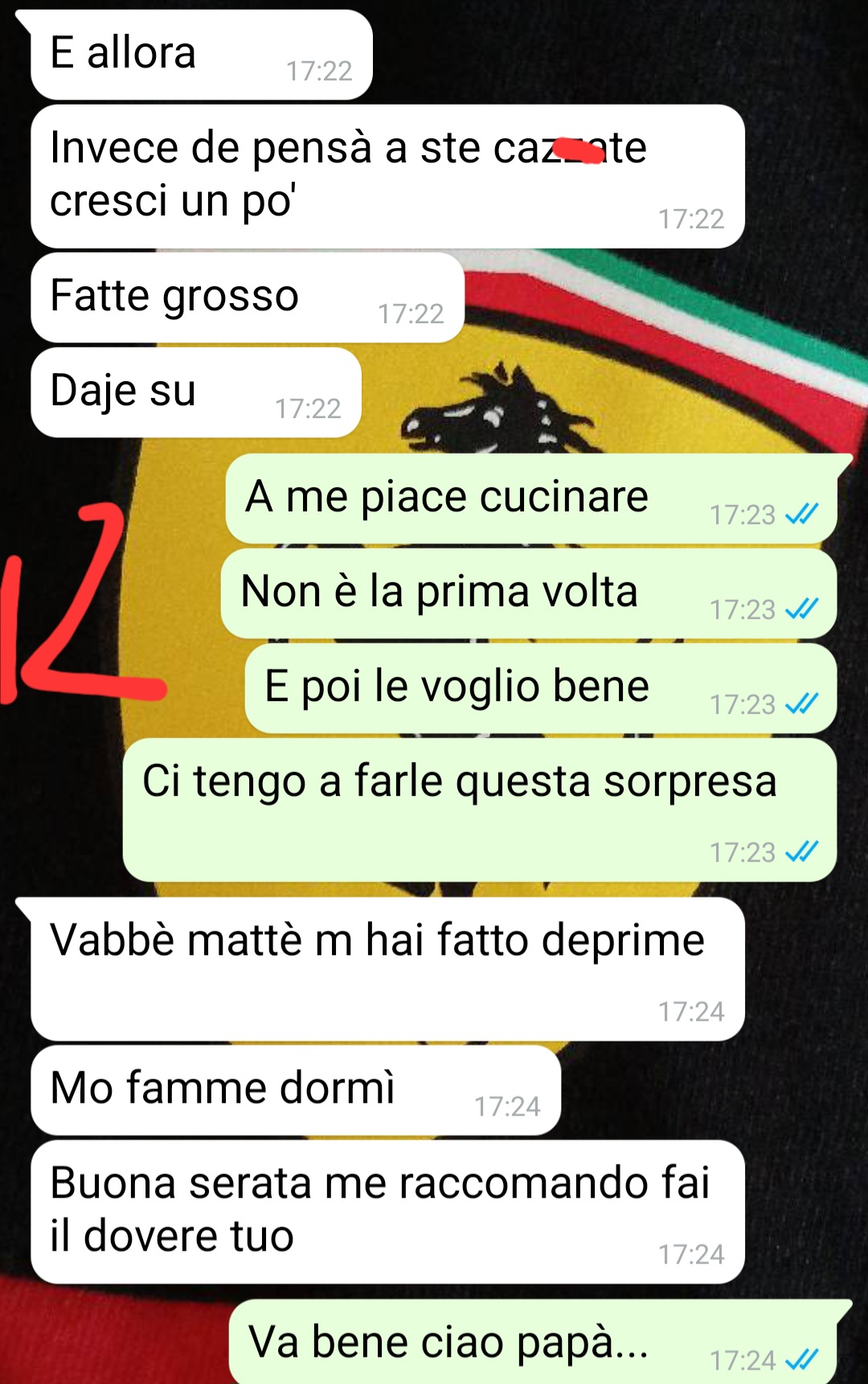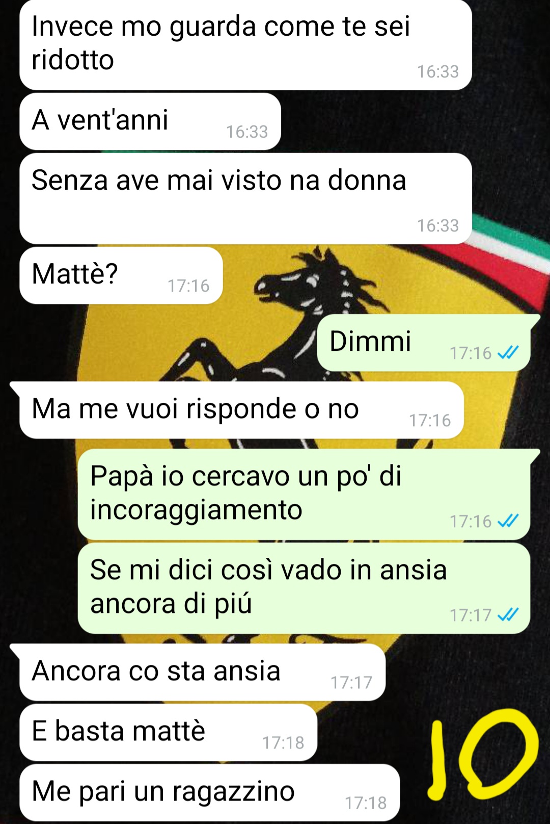 Per quanto riguarda la famiglia, il follower spiega di vedere suo padre piuttosto raramente, mentre ha più contatti con sua madre. Racconta che con il padre non ha mai avuto un rapporto particolarmente stretto, anche se comunque la sua presenza non è mai mancata del tutto. Proprio per questo motivo, quella sera aveva deciso di scrivere a lui. Il nostro fan racconta che sperava di poter ricevere un consiglio o un sostegno in un momento in cui si sentiva insicuro.