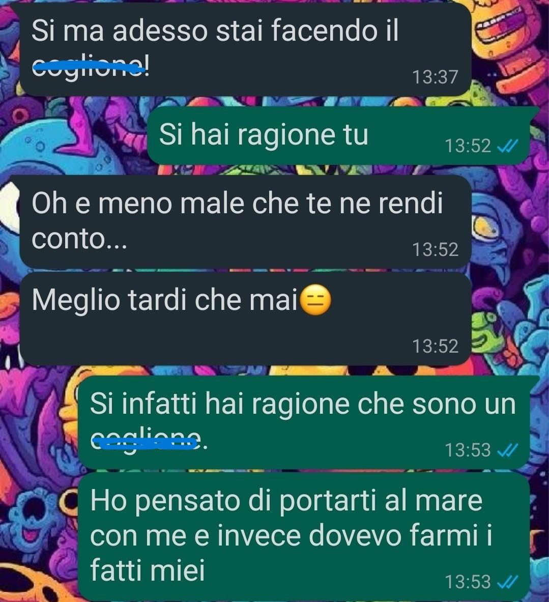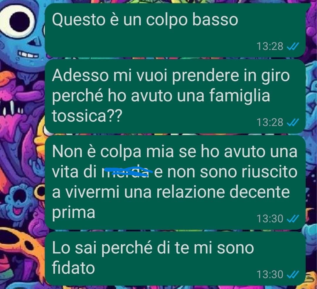 Il nostro follower ammette apertamente di aver sbagliato. Non cerca giustificazioni, anche se riconosce che le sue difficoltà emotive possono aver influito sul comportamento che ha avuto. Racconta che con questa ragazza si è sentito a proprio agio in quasi tutto, tranne che in un aspetto particolare della loro relazione, che emerge chiaramente dalla conversazione.