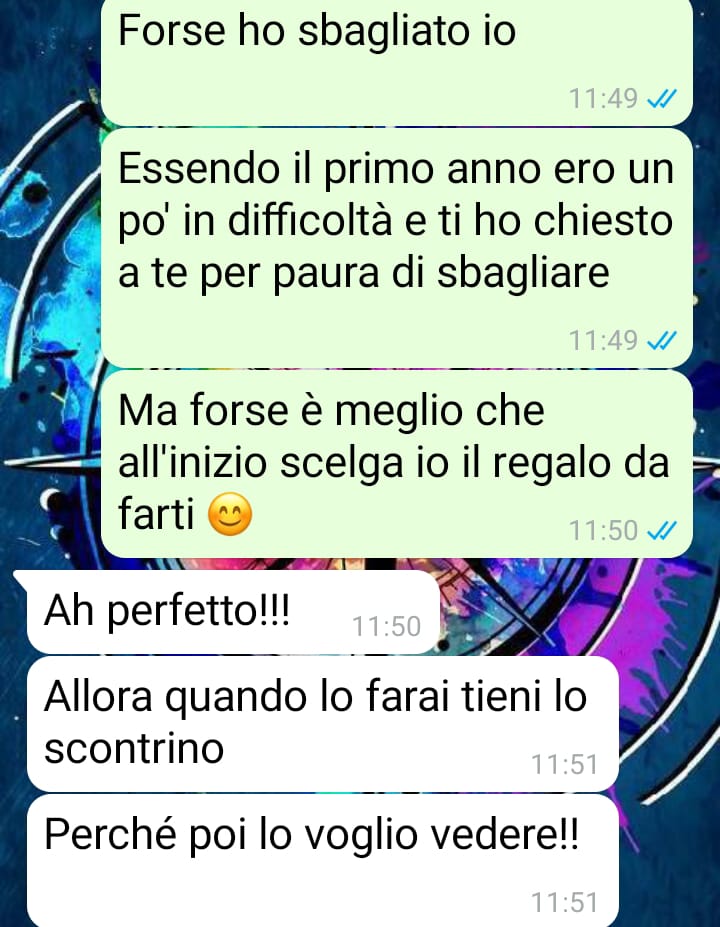 Il nostro fan riflette sul fatto che, a suo parere, per conoscere veramente una persona servano anche due o tre anni, ma ritiene che in questo caso siano bastati pochi messaggi per avere un quadro molto chiaro. La conversazione riportata in chat ha assunto un valore importante nella sua valutazione del rapporto.