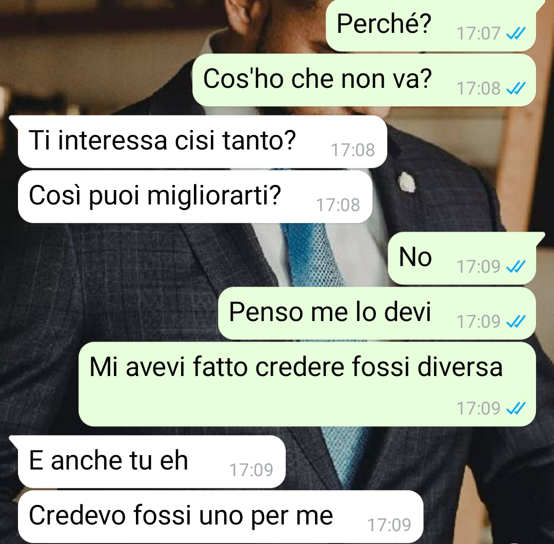 Dopo questi due mesi di scambi messaggi, Gabriele e Aurora decidono di incontrarsi di persona per la prima volta, organizzando un appuntamento semplice e informale. L’incontro si svolge senza particolari problemi, ma successivamente il nostro amico si trova costretto a dedicare tempo e attenzioni ai suoi familiari e agli impegni lavorativi. Per una settimana intera, Gabriele non riesce a contattare Aurora a causa di queste priorità personali, ma nota che nemmeno lei prende l’iniziativa di scrivergli durante questo periodo di silenzio reciproco.