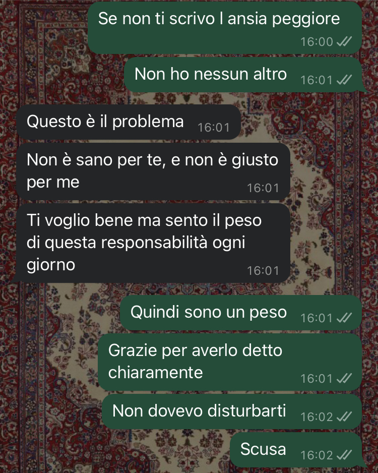 La nostra fan Giulia ha deciso di condividere un momento particolarmente difficile della sua vita con la community di Commenti Memorabili. L’amica sta attraversando un periodo molto complicato a causa di un disturbo che sta influenzando profondamente ogni aspetto della sua esistenza. La situazione è diventata così grave che la follower ha dovuto prendere la difficile decisione di lasciare il lavoro, non riuscendo più ad affrontare nemmeno una normale giornata in ufficio. Anche i rapporti sociali hanno subito un deterioramento significativo, con le amicizie che si sono progressivamente affievolite. La giovane descrive se stessa come una persona completamente diversa da quella che era prima, quasi irriconoscibile ai suoi stessi occhi.