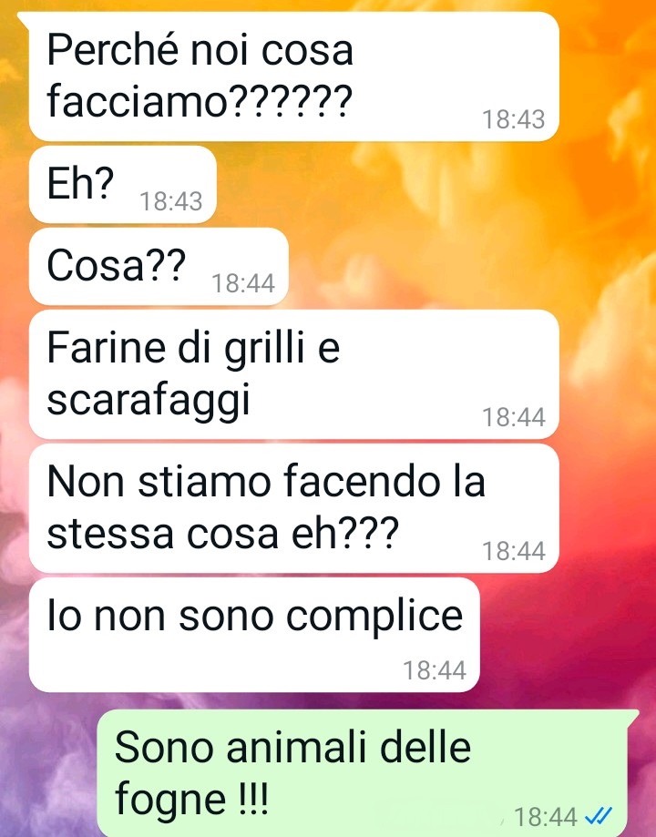 Dopo aver commesso quello che considera un errore, il nostro amico non ha nemmeno rimosso l’insetto morto perché si è distratto osservando altri scarafaggi che camminavano sopra lo sportello di un mobile della cucina, decidendo infine di allontanarsi dalla stanza. La sua compagna si rivela essere un’animalista molto convinta, ma lui non immaginava che il suo amore per gli animali potesse estendersi fino a questo punto estremo. Il fan conclude il suo racconto annunciando che sta per rivelare quale sia stata la reazione assurda della compagna a seguito dell’episodio dello scarafaggio ucciso.