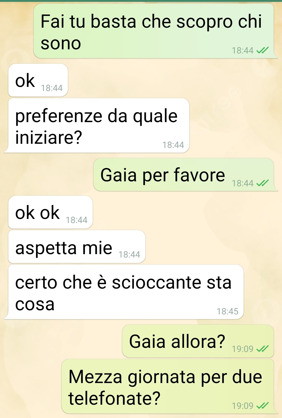 La scoperta è avvenuta per puro caso quando Rita è uscita per la sua consueta lezione di zumba, dimenticando però il borsello all’ingresso di casa. Il nostro fan, dovendo recarsi dal panettiere e non avendo spiccioli a disposizione, ha controllato nel borsello della fidanzata sperando di trovarvi del denaro. Invece del contante, Michelangelo ha rinvenuto degli scontrini utilizzati come promemoria, sui quali erano annotati nomi e numeri di telefono che in realtà si sono rivelati essere soprannomi piuttosto particolari.