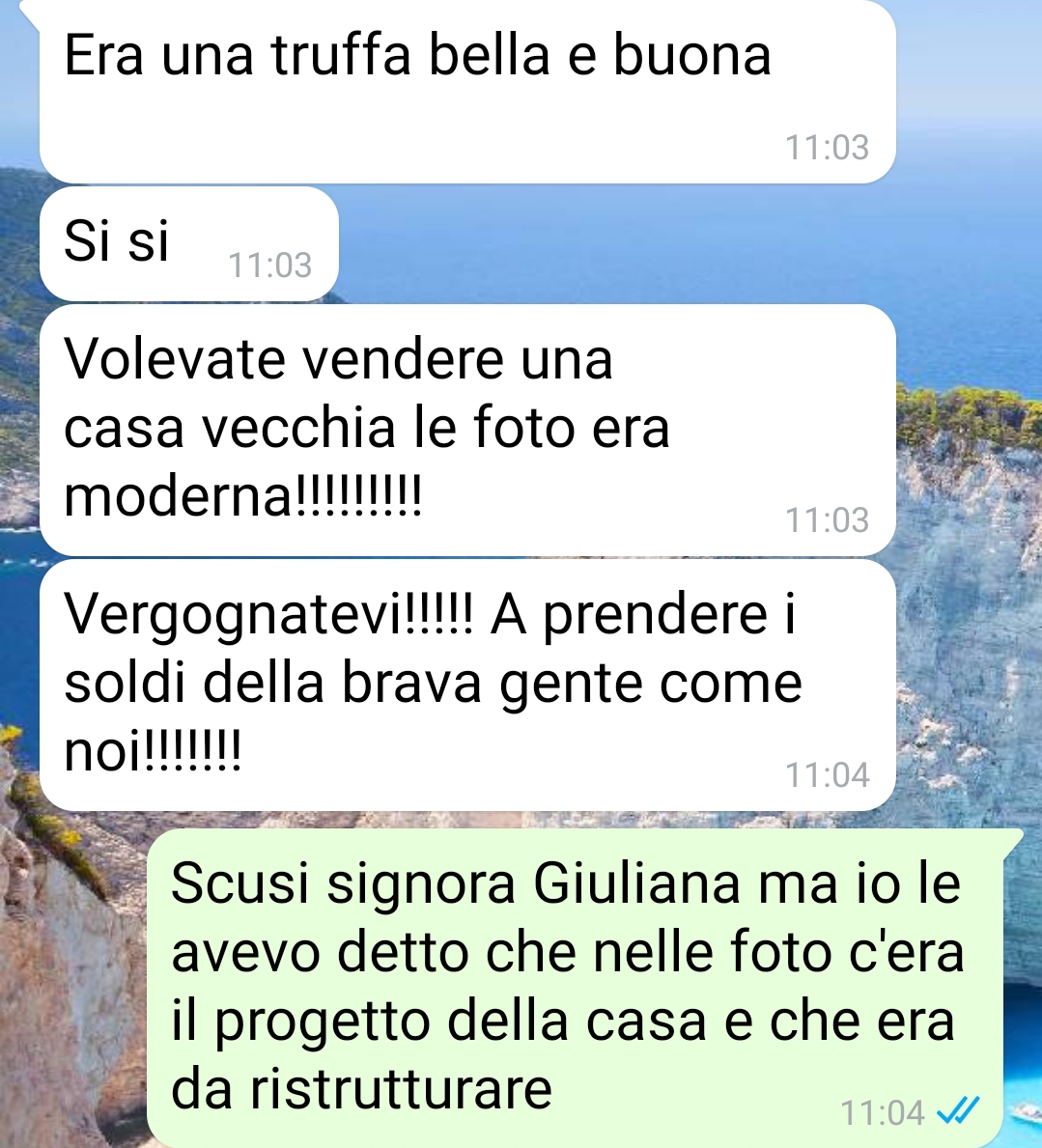 Dopo aver completato tutte le procedure burocratiche necessarie per l’apertura dell’agenzia, il nostro fan e la sua famiglia si sono dedicati alla ricerca di immobili da inserire nel loro portafoglio. Sono riusciti a trovare quattro proprietà interessanti, distribuite tra la loro città e una località vicina. Nonostante non avessero mai avuto esperienza diretta nelle vendite immobiliari, la prima opportunità si è presentata quando una signora di nome Giuliana ha contattato Federica tramite WhatsApp, mostrandosi interessata a una delle loro proposte.