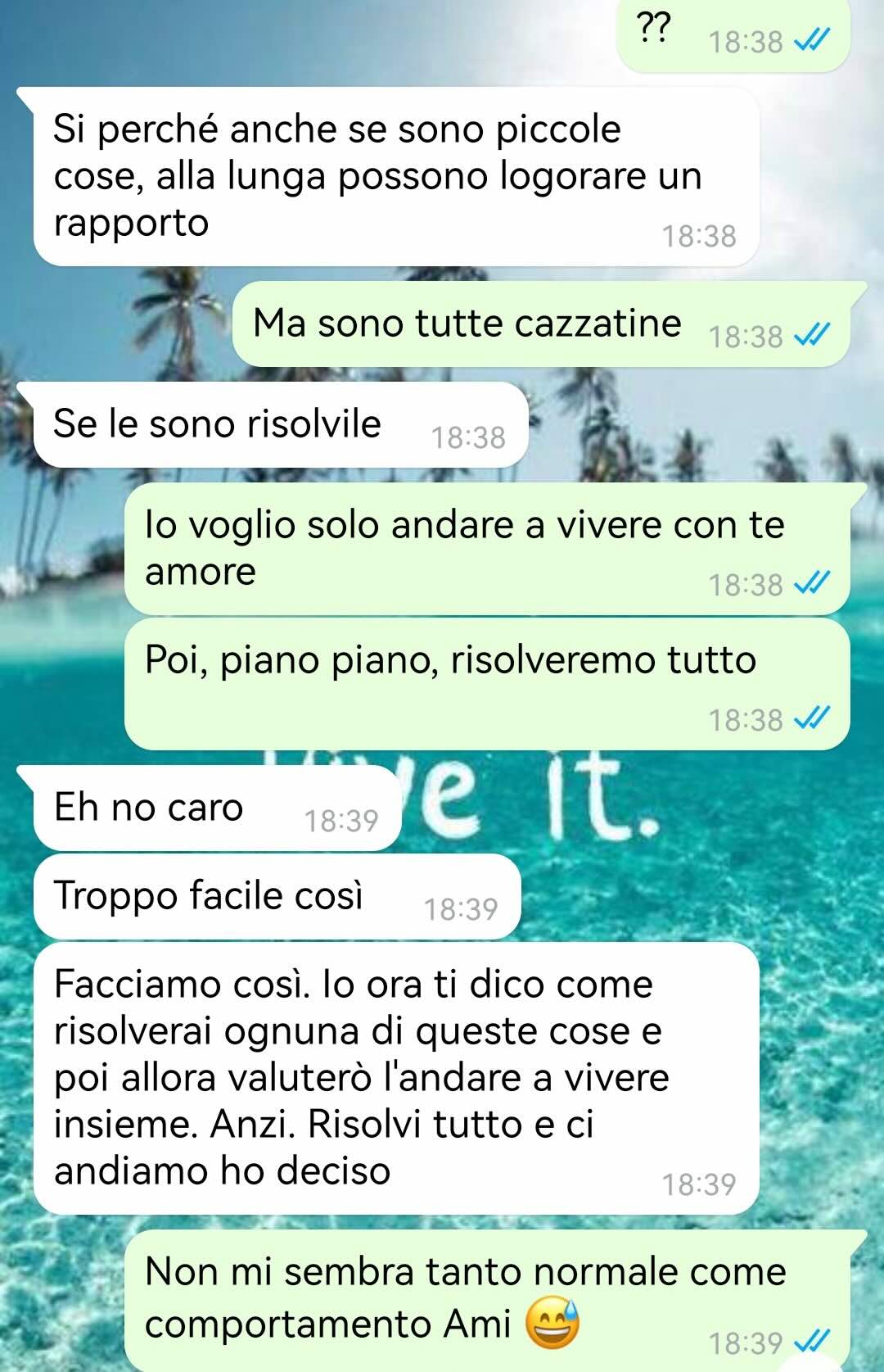Il nostro amico si interroga persino su una possibile “maledizione” legata alla legge di attrazione, sentendosi confuso e deluso. Questa volta, però, afferma di averci creduto davvero: pensava che Amelia fosse la persona giusta, una convinzione che sentiva profondamente, in modo quasi istintivo. Ciò che inizialmente lo aveva colpito di lei era la sua intelligenza e razionalità, qualità che gli sembravano perfettamente complementari al suo carattere più impulsivo e sognatore.