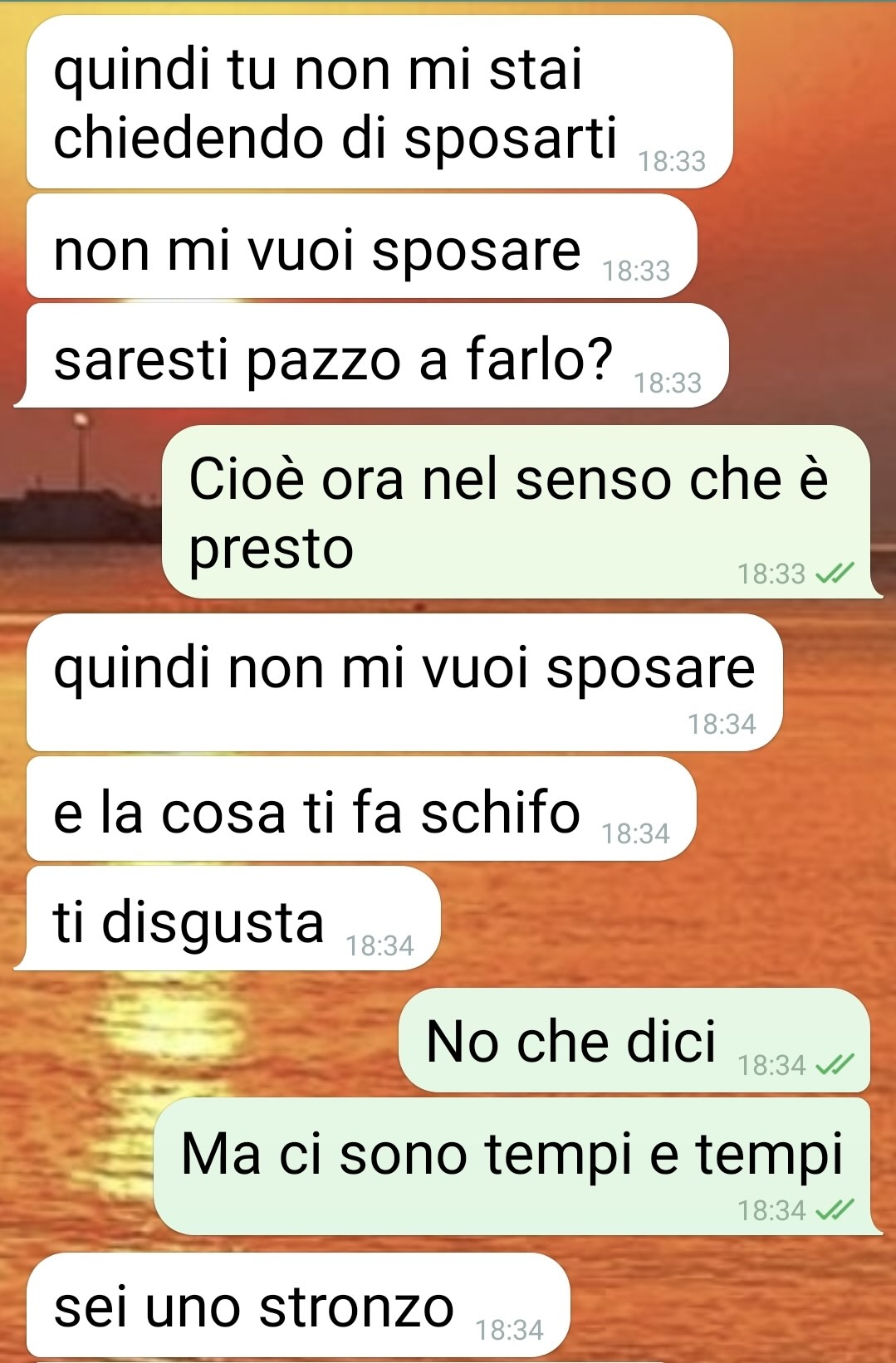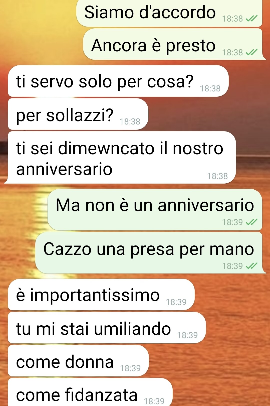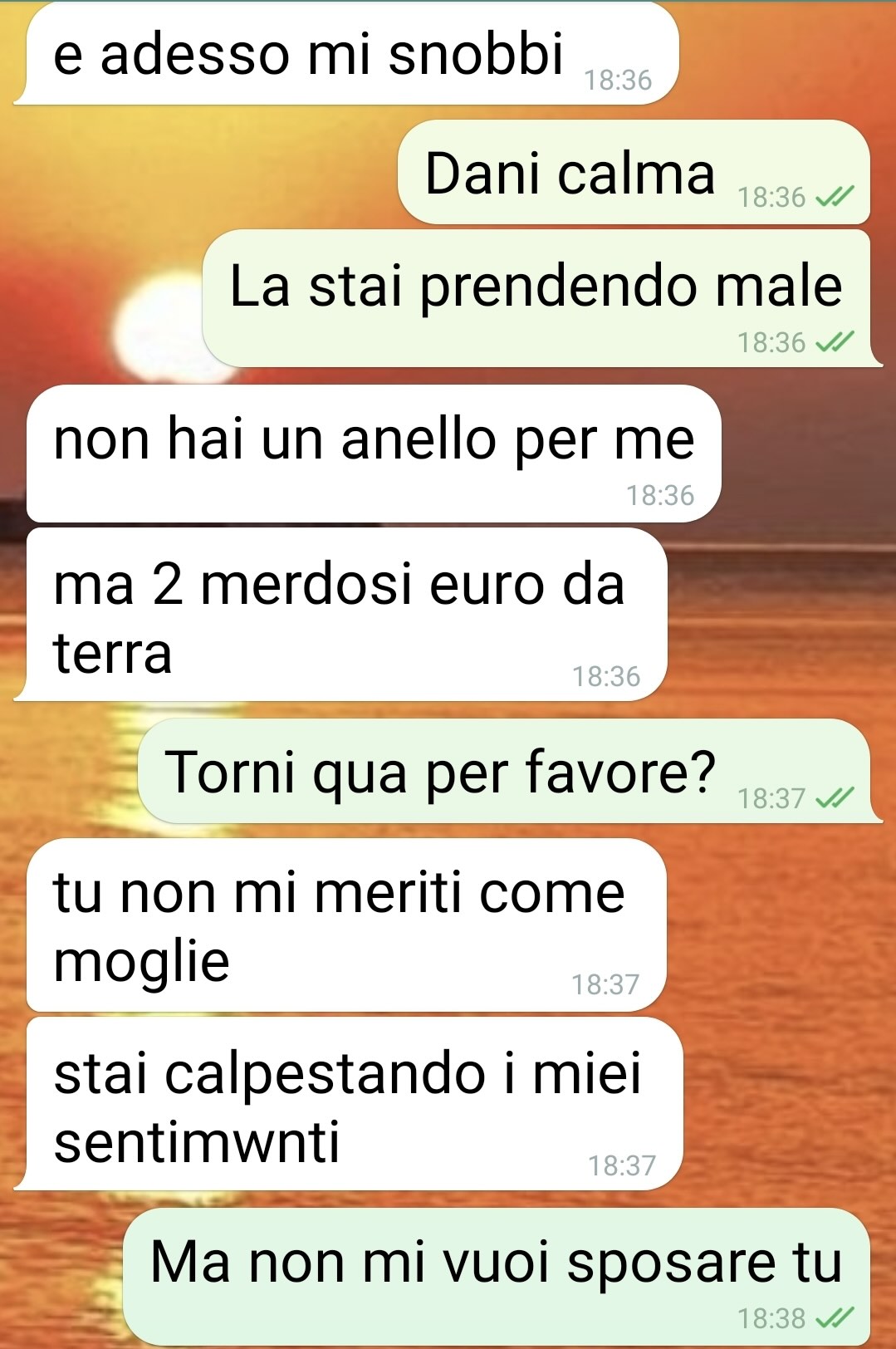 Dalla chat che segue, spiega il nostro fan, emerge che Daniela aveva completamente frainteso la situazione: credendo che lui stesse per inginocchiarsi per farle una proposta di matrimonio, era stata colta dal panico e, presa dall’agitazione, era fuggita senza una parola.