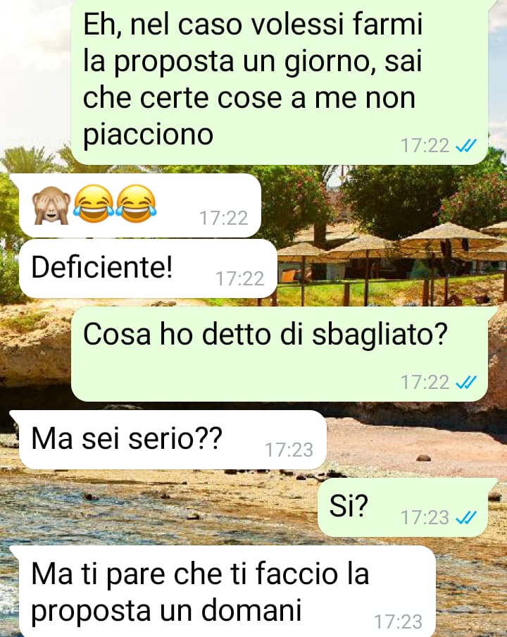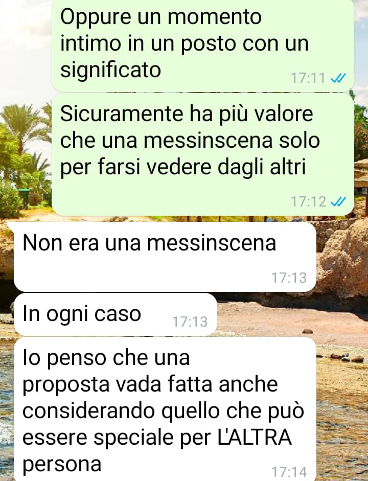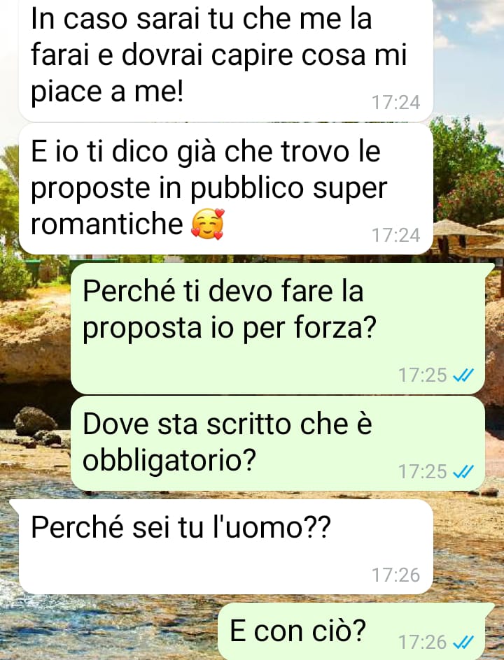 Solitamente, dice, non discutono per motivi simili, probabilmente perché era la prima volta che affrontavano in maniera concreta l’argomento delle proposte di matrimonio. Proprio questo tema è diventato il fulcro della conversazione, portando a un contrasto inaspettato.