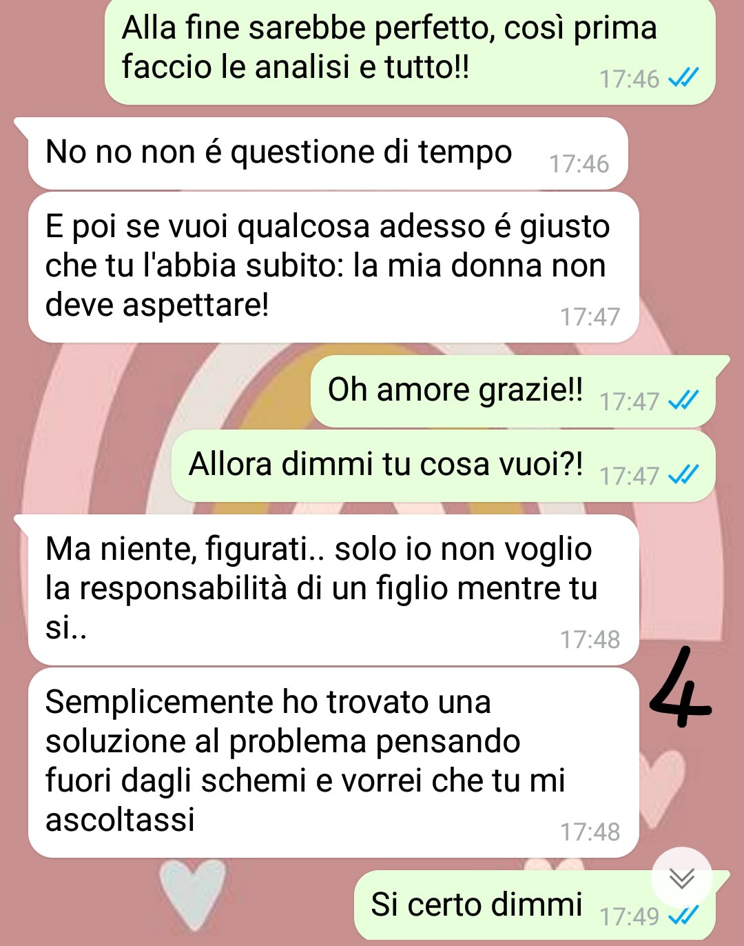 Sapeste come sono arrabbiata!! Allora io sono Alice e con il mio compagno si chiama Nicola, viviamo insieme. Io e Nicola siamo persone molto diverse: lui è uno che pensa solo a godersi la vita, sempre lì a cercare cose costose da comprare e feste a cui andare.. io invece sono una ragazza semplice, io voglio una famiglia, magari due o tre figli, e in generale vivere una vita tranquilla e pacifica senza troppi pensieri e balzelli. La cosa più importante per me è diventare mamma: ci tengo moltissimo, non vedo l’ora!! Ora ho 23 anni, io e Nicola stiamo insieme da 1 anno e io penso che sia venuto il momento di fare questo passo.. d’altronde noi ci amiamo e stiamo bene insieme.. perché aspettare ancora??! Il problema è che lui non è tanto entusiasta della mia idea: secondo lui un figlio sarebbe un grande peso, limiterebbe la sua vita e non gli permetterebbe di fare le cose che fa adesso. Io davvero non capisco: ormai siamo adulti (Nicola ha 26 anni), è tempo che cresciamo e facciamo le cose da adulti.. o no?? Comunque della cosa abbiamo discusso molto: io mi sono arrabbiata, ho urlato e pianto e alla fine lui sembrava aver capito che era una cosa a cui non avrei mai rinunciato. L’idea che ha tirato fuori però proprio non me l’aspettavo…