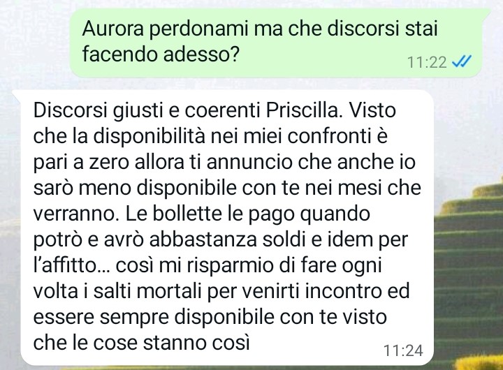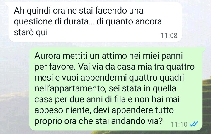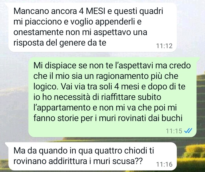 La nostra fan Priscilla ha deciso di condividere con Commenti Memorabili una conversazione che l’ha lasciata profondamente amareggiata e frustrata. Si tratta di un episodio legato all’appartamento che affitta da alcuni anni, ma che per lei non rappresenta solo un immobile, bensì un luogo pieno di ricordi, affetto e significato personale.