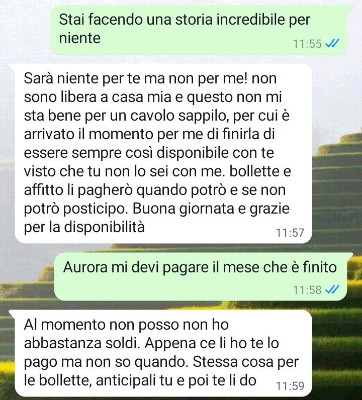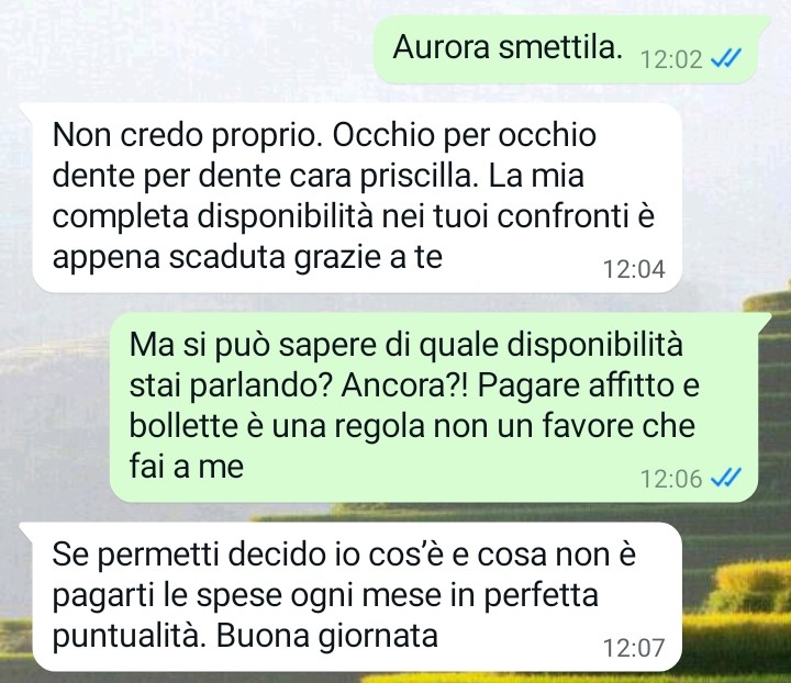 Sconvolta da quanto accaduto, Priscilla ha deciso di raccontare tutto. Non tanto per un bisogno di avere ragione, quanto per il desiderio di sfogarsi e condividere l’assurdità di una situazione che l’ha colpita sul piano personale, prima ancora che su quello pratico. Il comportamento dell’inquilina ha violato non solo alcune regole fondamentali del rispetto tra locatore e affittuario, ma anche un confine emotivo che per Priscilla ha un valore profondo. La chat allegata mostra chiaramente come, in pochi scambi, una relazione apparentemente serena si sia trasformata in un confronto acceso e irrazionale.