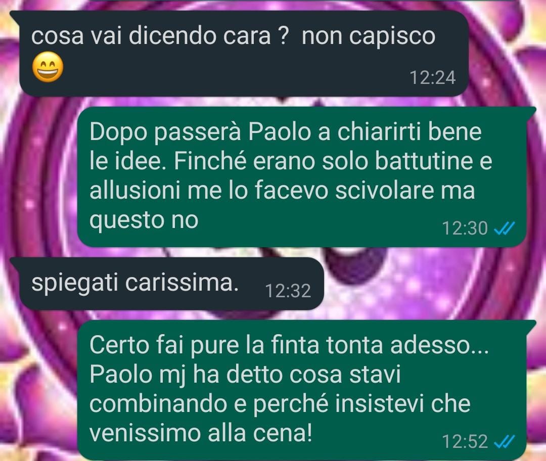 Questa precauzione le permette di avere una prova tangibile dell’atteggiamento negativo di Serenella, non solo per confrontarla direttamente, ma anche per mostrarla a Paolo, facendogli capire la situazione problematica.