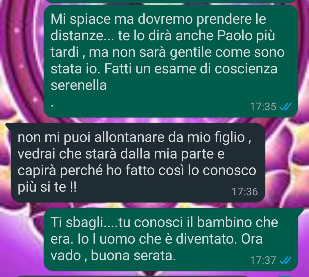 Alice si sente giustificata nel voler rendere pubblica la natura di Serenella, non solo per cercare sostegno e forse comprensione da parte di Paolo, ma anche per condividere con altri una situazione che potrebbe essere comune a molte persone che si trovano a gestire relazioni difficili con i familiari del partner. Questa condivisione serve come un modo per Alice di cercare una risoluzione e di proteggere il proprio benessere emotivo nella relazione con Paolo e con la sua famiglia.