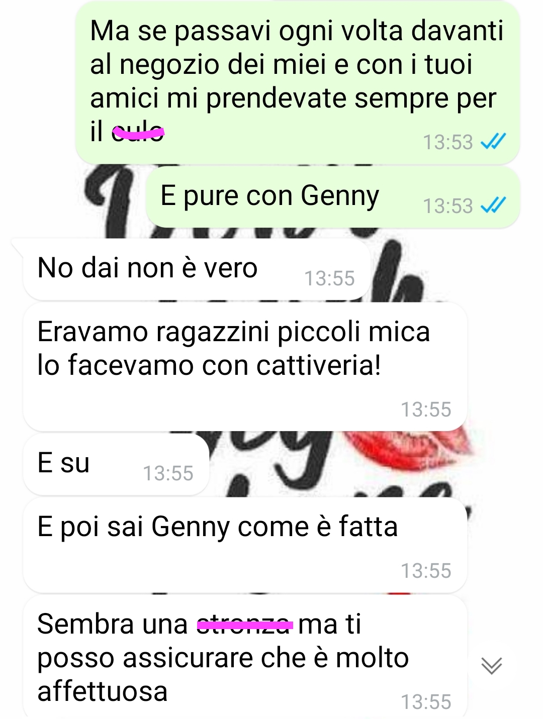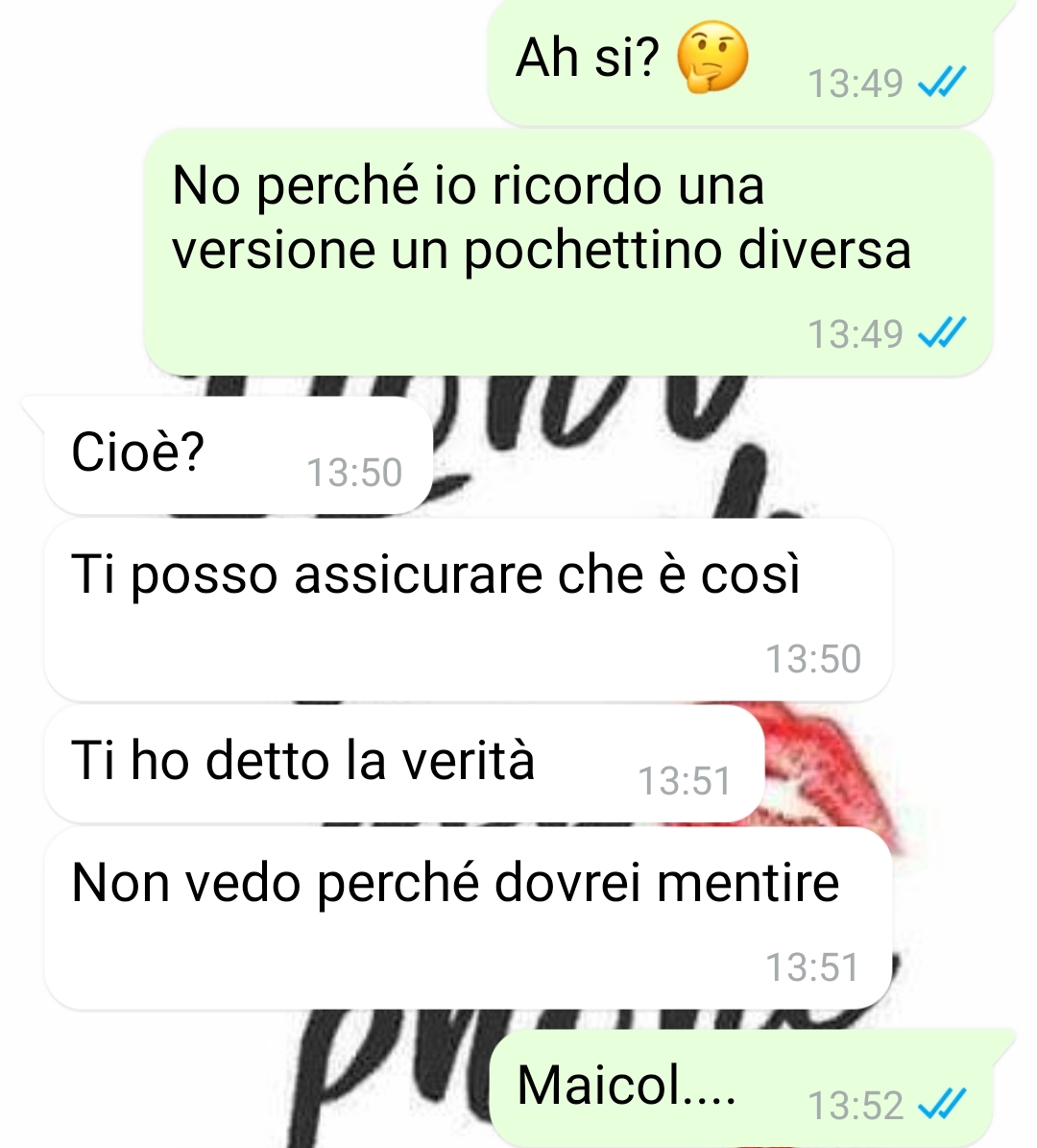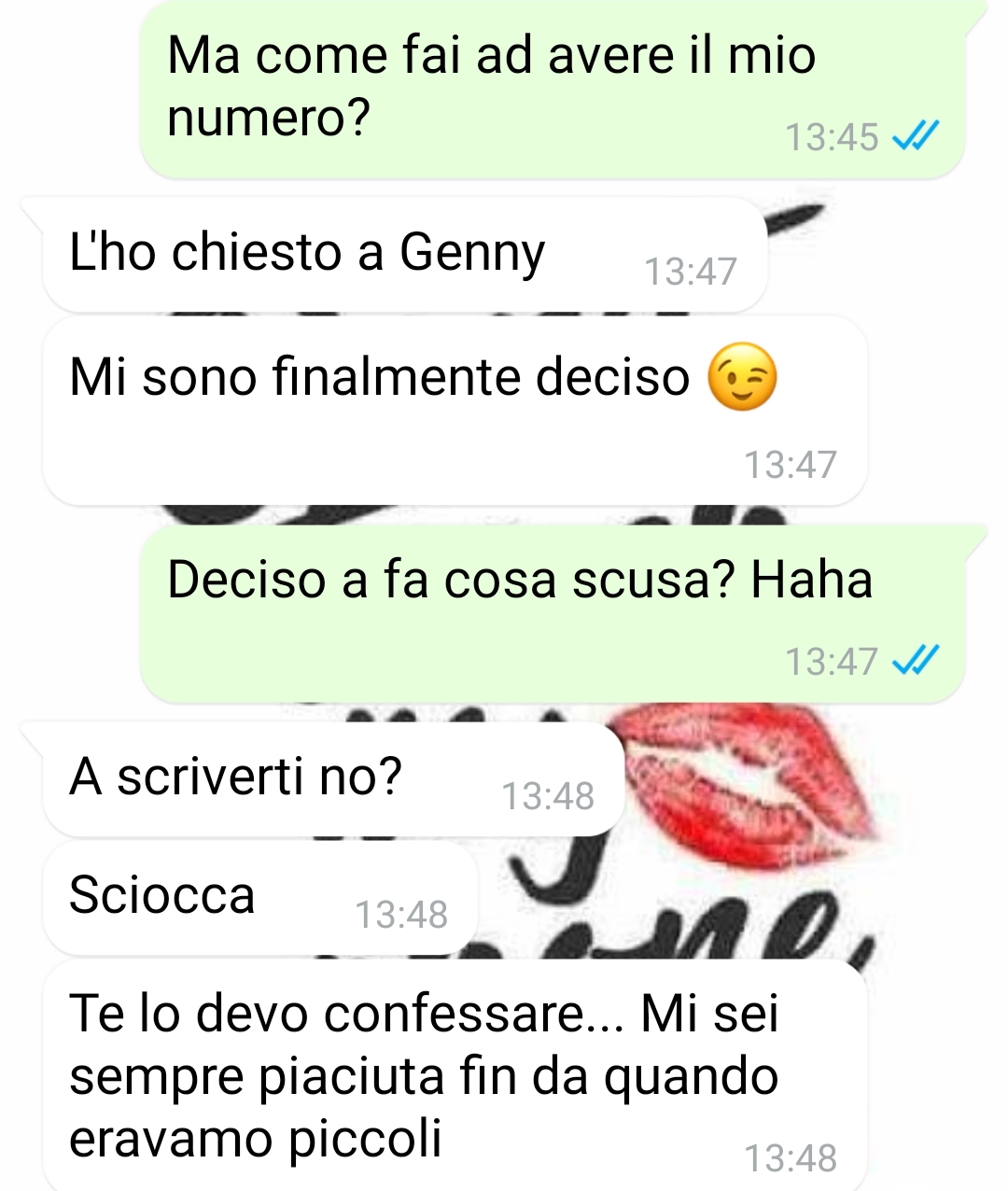 Mi chiamo Antonella e vengo da un piccolo paesino del centro Italia . Scrivo a Spunte Blu perché alla pochezza delle persone non c’è mai limite e voglio condividere questa conversazione con tutti i lettori. Quando ero piccola (vi ripeto, vivevo in un paesino piccolo e sappiamo tutti come sono i paesini), ero la più paffutella tra le bambine e per questo motivo mi prendevano tutti in giro. Crescendo sono dimagrita e mi sono trasformata in una bella figliola, perciò hanno iniziato a scrivermi tutti di nuovo. Si sono dimenticati delle pene dell’inferno che mi hanno fatto passare da bambini. Tra chi mi ha scritto c’è pure Maicol , il fratellastro di Genny, una tipa odiosa. Loro due insieme mi dicevano le peggio cose, ma non sanno che io ho scoperto delle cose su di loro che potrebbero cambiare tutto. Comunque mi scrive Maicol con intenzioni ben precise, ma si sa che il lupo perde il pelo e non il vizio. Quindi l’ho aggiustato per bene. O almeno spero, lascio giudicare a voi.