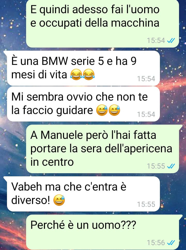 Una nostra fan di 32 anni ha voluto condividere una conversazione che, come racconta, le ha fatto aprire gli occhi su quanto certi atteggiamenti maschilisti siano ancora profondamente radicati nella quotidianità, anche in relazioni che si credono moderne e paritarie. Tutto è nato da un episodio apparentemente banale: la questione di lavare la macchina.