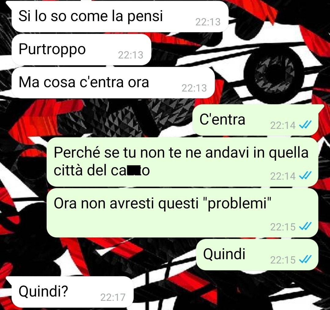 Il nostro fan ha deciso di condividere una conversazione avuta recentemente con la propria ragazza, definita da lui come assurda, che ha generato tensioni e incomprensioni nella coppia. Il motivo dello scontro nasce da una decisione importante presa dalla compagna: trasferirsi a Milano per frequentare la laurea magistrale, scelta che il nostro follower non ha condiviso, pur riconoscendo di non aver avuto il diritto di impedirglielo.