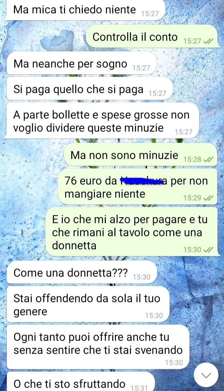 Va all’appuntamento senza soldi: lui si rifiuta di pagare per lei