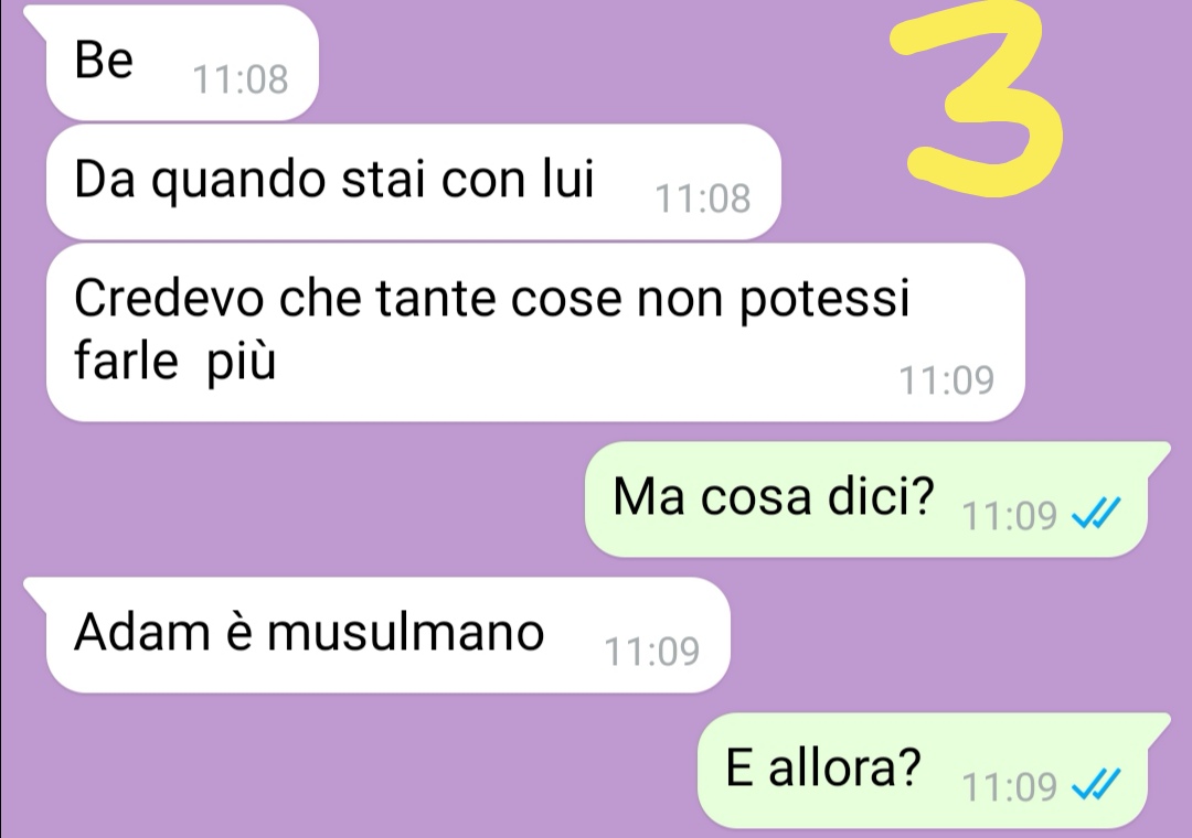 Abbiamo ricevuto una mail da parte di Francesca, una ragazza che ha deciso di raccontarci la sua storia per condividerla con i nostri lettori. Lei è fidanzata con un ragazzo fantastico, parole sue, ma accanto a questa felicità si è affiancata una situazione strana con la sua amica di sempre, Laura. Infatti da quando Francesca sta con Adam, ogni volta che invita Laura è il suo fidanzato a unirsi a loro per passare un po’ di tempo insieme, riceve sempre un no come risposta. Dopo una serie di no, quindi, un giorno sbotta e decide di affrontare l’amica per chiederle se ci sia qualcosa che non va…Francesca ha notato che il suo atteggiamento, e quello del suo ragazzo, è cambiato con l’entrata in scena di Adam. Francesca comincia a farsi un’idea del perché ci sia tutta questa ritrosia e durante questa conversazione viene a galla tutto. Francesca ci invia la chat per porre pubblicamente una domanda: Possibile che al giorno d’oggi si debba ancora vivere di preconcetti senza provare a conoscere le persone per ciò che sono?