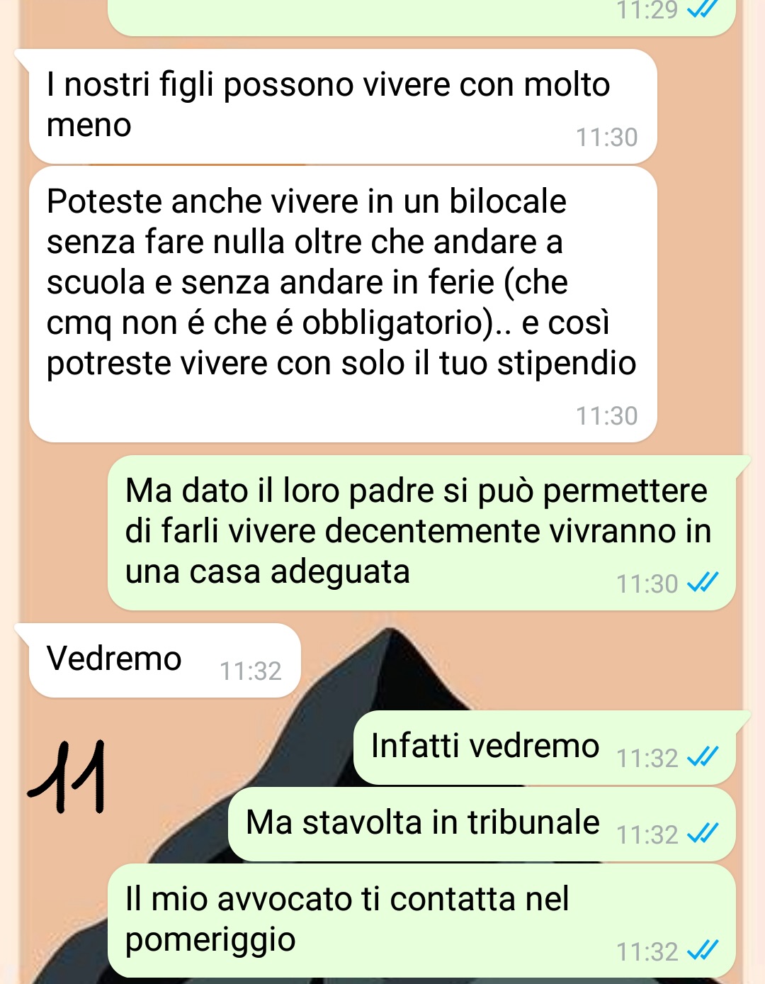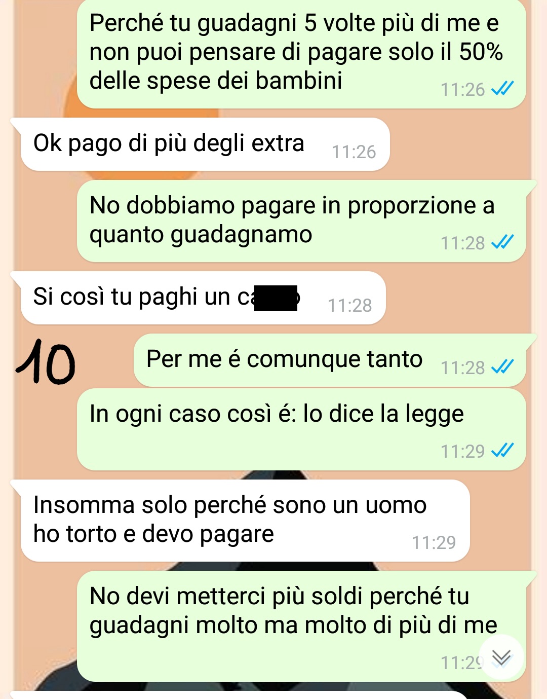 Nonostante questa differenza economica, Cesare ha deciso che il mantenimento dei tre figli debba essere suddiviso esattamente al 50% tra loro due, senza tenere conto delle loro diverse possibilità finanziarie. Ha persino fatto un calcolo preciso delle spese necessarie per i bambini e si è impegnato a pagare soltanto la metà, rifiutandosi di contribuire in modo proporzionato al suo reddito.