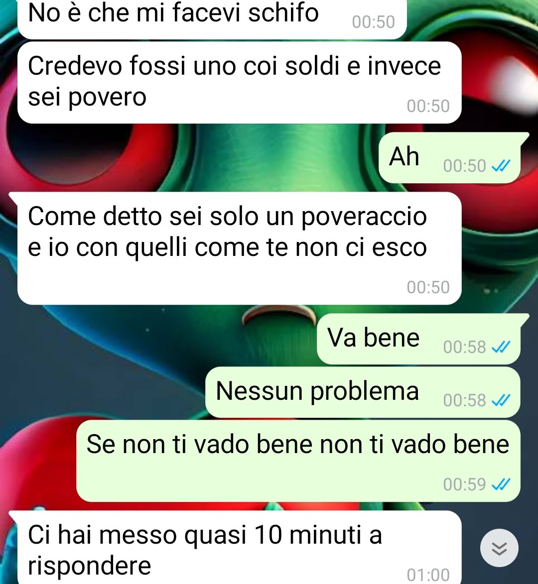 Il nostro fan ha voluto condividere un’esperienza personale che lo ha segnato profondamente, ringraziando per l’opportunità di poterne parlare. Si tratta di un episodio vissuto recentemente, legato a una conoscenza durata due mesi, che seppur breve, è stata intensa e caratterizzata da un forte feeling iniziale. Il nostro amico racconta che, a causa dei suoi numerosi impegni, avrebbe preferito che la vera natura della persona in questione fosse emersa prima.
