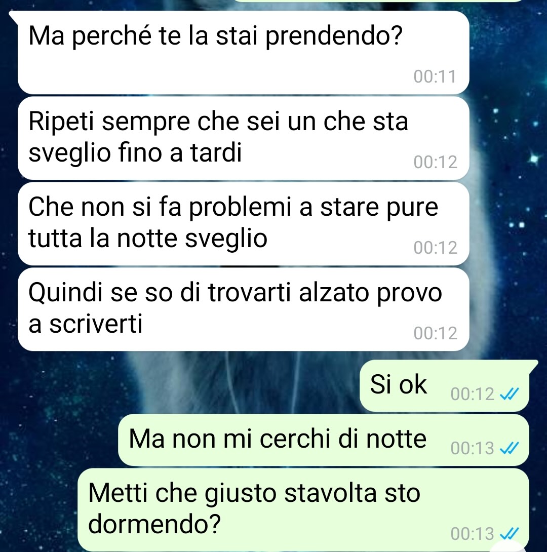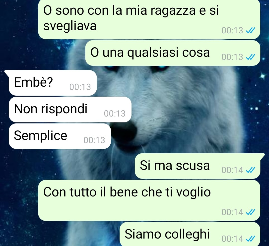 Mi chiamo Andrea e mi sono ritrovato ad affrontare una situazione agghiacciante. Si tratta di una cosa che riguarda il mio lavoro, ma riguarda più lo svago. Io sono all’interno di una piccola azienda, una sorta di famiglia allargata, e mi trovo benissimo ormai da un bel po’ di anni. Da qualche tempo sono entrati una serie di nuovi soggetti che ora sono miei colleghi e colleghe e tra loro c’è Giuseppe. Ora c’è un fatto da considerare. Il mio capo si sposa e io sono felicissimo per lui, ha deciso un luogo a metà tra dove vive lui e la famiglia della sua lei e ovviamente è lontano rispetto a chiunque altro perciò ci sarà una bella spesa da parte di ognuno di noi. A me non importa, gli voglio bene come a un fratello e guadagno abbastanza da potermelo permettere. Ma ora arriva questo ragazzo, perché ha tipo 10 anni meno di me, che mi contatta in piena notte, si mette a tu per tu e mi dice cose che meriterebbero una denuncia. Non ho ancora mostrato la conversazione al mio capo, ma se sta persona continua mi sa che sarà l’unico modo per farlo smettere.