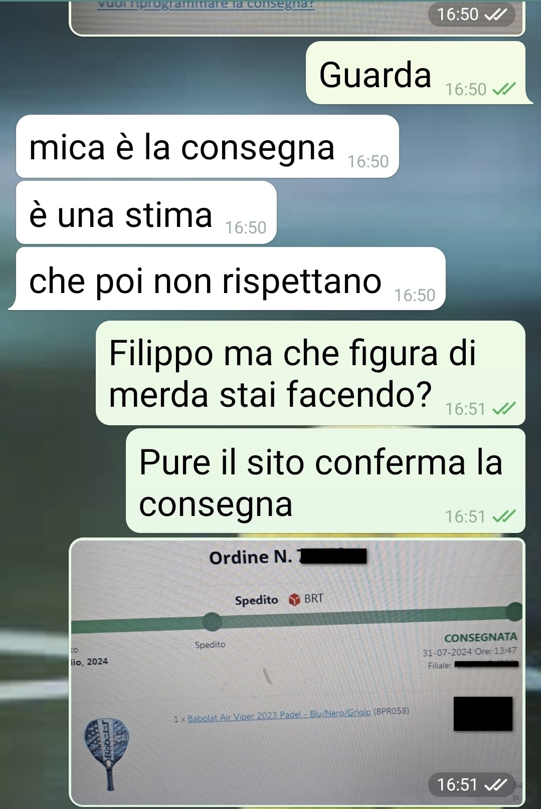 Tutto ha inizio nel primo pomeriggio, quando Biagio riceve la notifica della consegna di un pacco molto atteso: la pala da padel che aveva ordinato online e che avrebbe dovuto usare la sera stessa per una partita. Una perfetta tempistica, almeno in apparenza. Una volta rientrato a casa, però, la delusione: del pacco non c’è traccia.