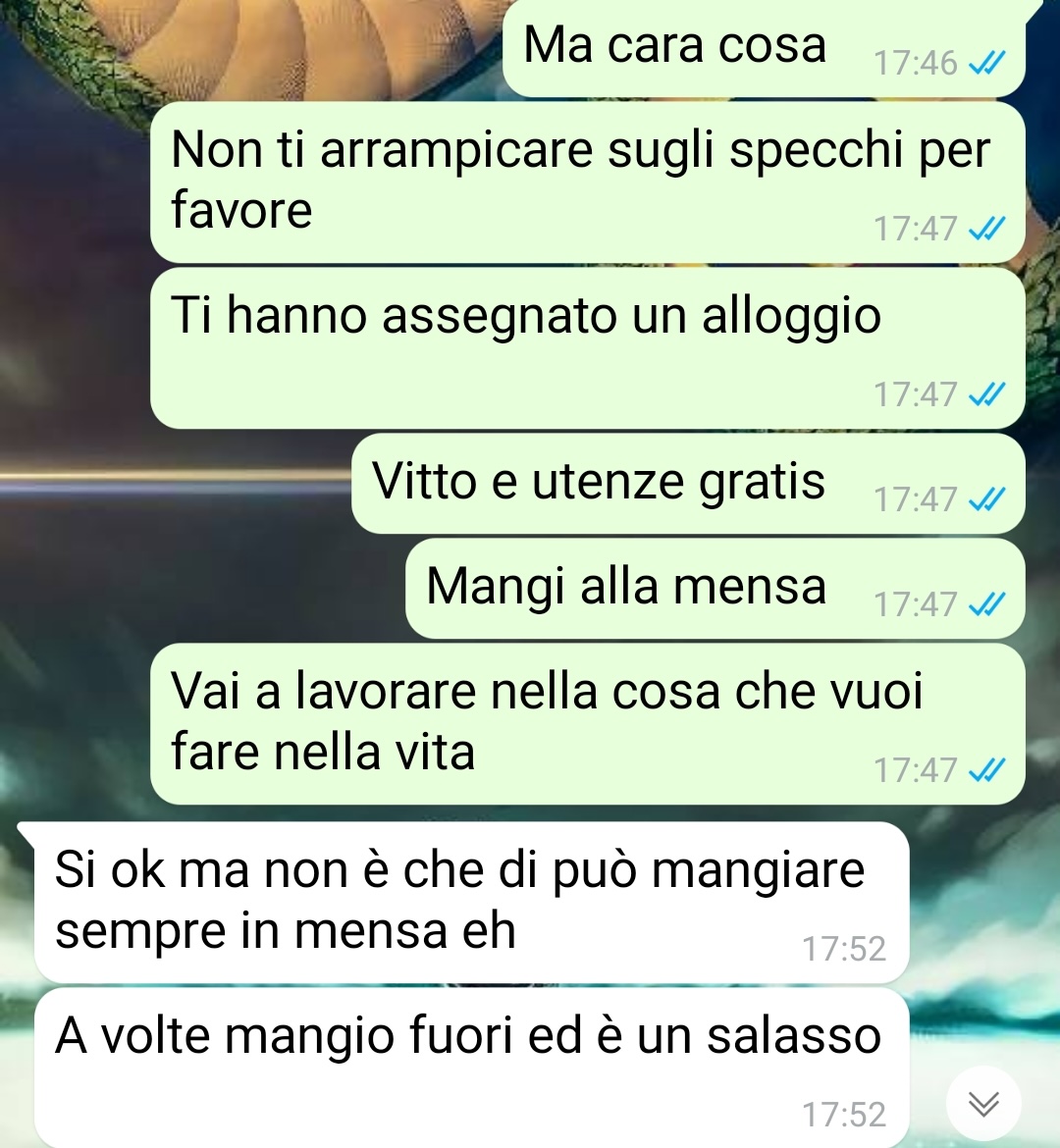 Racconta che, al primo segnale di fatica o insicurezza, la ragazza si è mostrata abbattuta, impaurita e demoralizzata. Tuttavia, il nostro amico sottolinea come non si tratti di un contesto lavorativo difficile o precario: anzi, lei lavora nel campo per cui ha studiato, in un ambiente che – a suo dire – è molto più favorevole rispetto alla realtà che vivono tante altre persone in Italia.