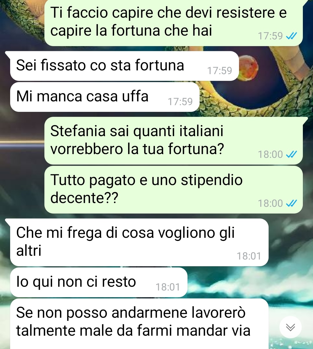 Oggi la ragazza non gli parla più, dicendo di essersi sentita ferita e giudicata, troppo delicata – come lui stesso ammette – per reggere quel tipo di confronto. Mauro, però, resta convinto che il punto centrale sia uno solo: la difficoltà di accettare che a volte le persone non vedono ciò che hanno e si lamentano, anche quando si trovano in situazioni privilegiate.