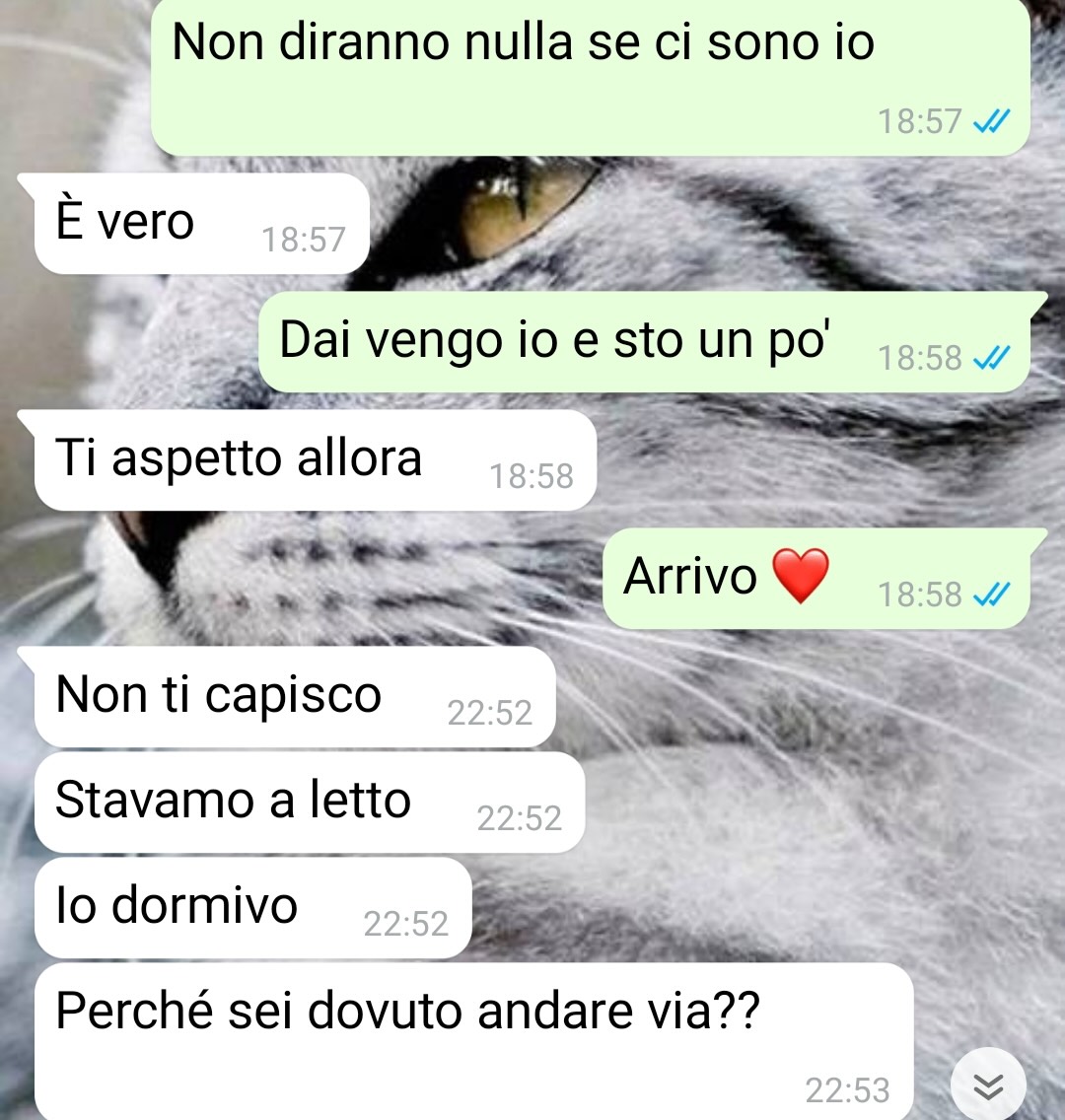 Il nostro fan, Francesco, conosciuto da amici e conoscenti come Frafra, racconta la fine complicata della sua relazione con la sua compagna. Ammette di aver trascinato a lungo la storia con la ragazza, pur sapendo che ormai era giunta al limite. Spiega che quando si sta con una persona per un certo periodo, è naturale affezionarsi, e proprio per questo motivo è difficile lasciarsi fino a quando non si arriva a un punto di esasperazione totale. Ed è esattamente questa la situazione in cui si è trovato mentre scriveva e condivideva la sua esperienza.