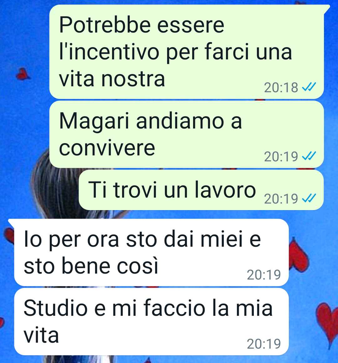 Rita, pur non provando gelosia per il fatto che il suo fidanzato abbia già una figlia, desidera avere un figlio con lui. Si trova in un’età in cui ritiene sia il momento giusto per allargare la famiglia. Tuttavia, ha esitato nel comunicare questo desiderio direttamente a lui a causa della sua timidezza. Ha quindi scelto di avvicinare l’argomento attraverso una chat, pur essendo consapevole che alcune questioni potrebbero essere meglio discusse di persona.