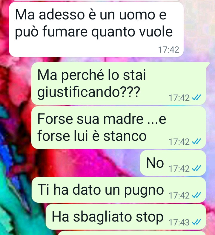 Esprime la sua rabbia e la sua frustrazione di fronte al tema della violenza contro le donne. Ritiene che sia inaccettabile che le donne siano vittime di violenza da parte di uomini che dichiarano di amarle. Critica l’atteggiamento violento, isterico e deviato di alcuni uomini, sottolineando che spesso queste situazioni derivano da incapacità di gestire le emozioni e il rifiuto, oltre a mancanza di intelligenza emotiva.