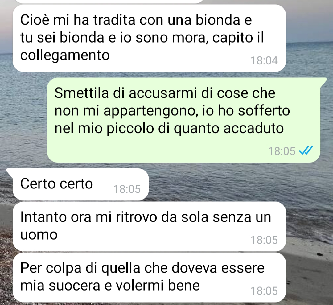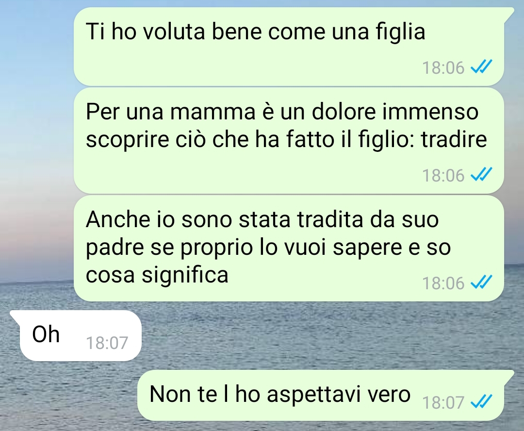 La nostra follower racconta di aver sempre trattato la compagna del figlio come una figlia, accogliendola in famiglia con affetto sincero. Per questo motivo, la scoperta del tradimento è stata doppiamente difficile da affrontare: come madre, ma anche come figura di riferimento emotivo per la giovane donna coinvolta.