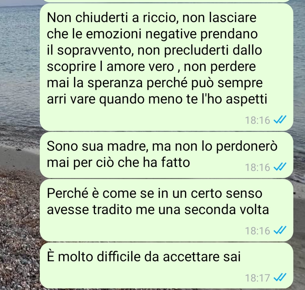 Attraverso le sue parole e la condivisione di ciò che è successo, la nostra fan dà voce a un dolore silenzioso e spesso poco riconosciuto: quello di una madre che si trova a fare i conti con l’errore di un figlio, sentendosi divisa tra l’amore materno e la propria coscienza.