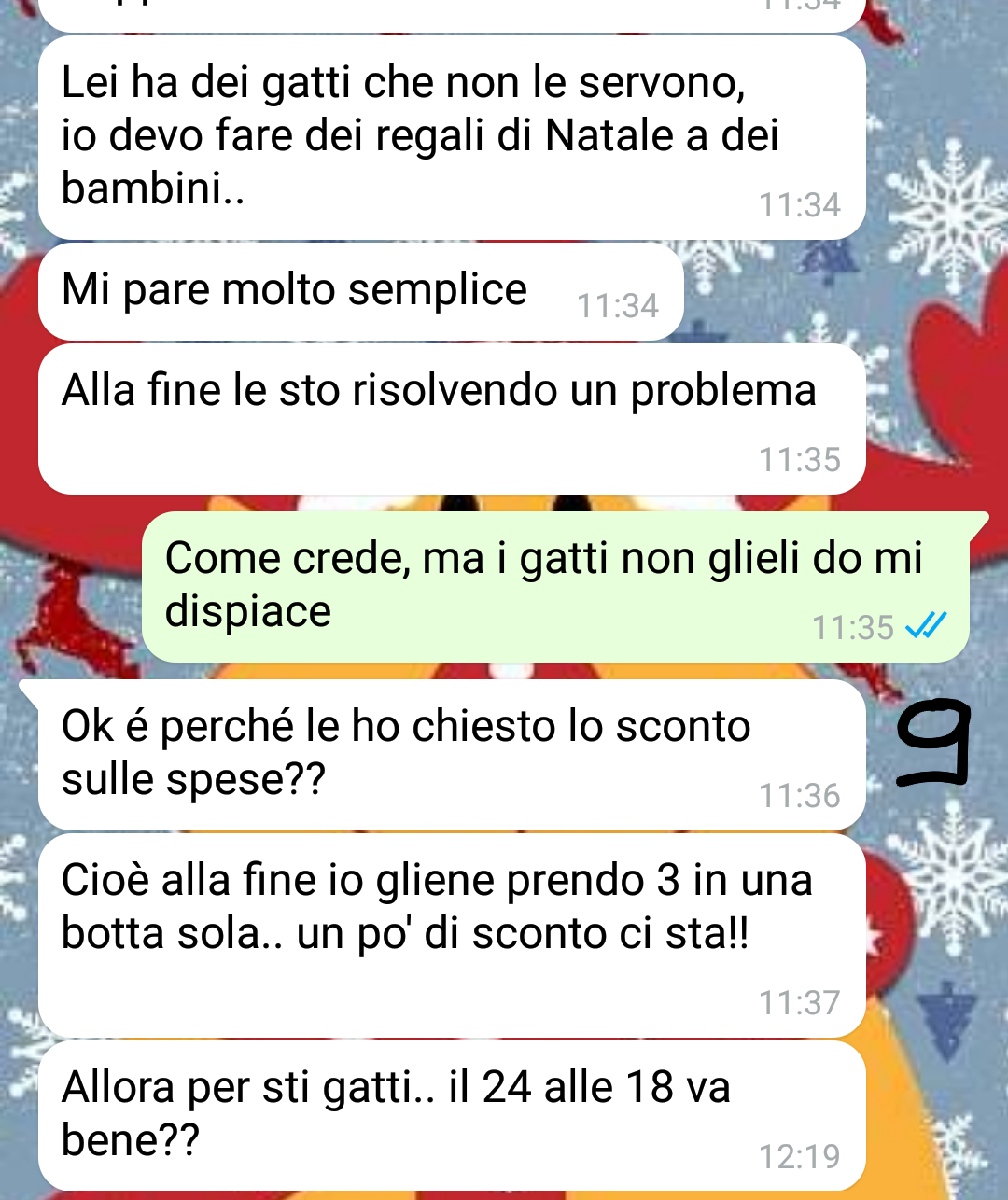 Il giorno successivo, il nostro fan spiega di aver portato il gatto dal veterinario, dove sono emersi alcuni dettagli importanti: non era dotato di microchip, era una femmina ed era incinta. L’amica racconta che hanno provato a rintracciare eventuali proprietari, affiggendo cartelli e pubblicando annunci, ma senza ottenere risposte. Il nostro fan riferisce che, secondo il veterinario, l’animale potrebbe essere stato abbandonato proprio a causa della gravidanza. A quel punto, l’amica e il compagno decidono di tenerlo con loro, dandogli il nome Molly.