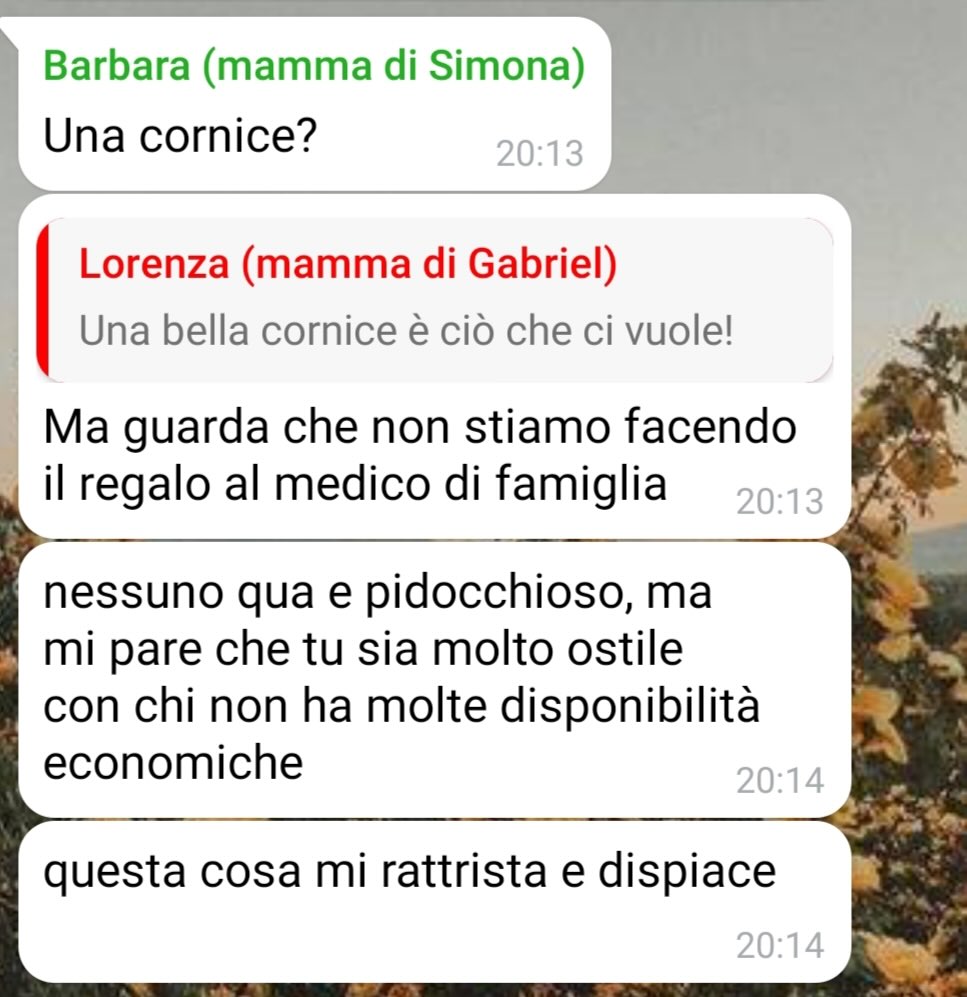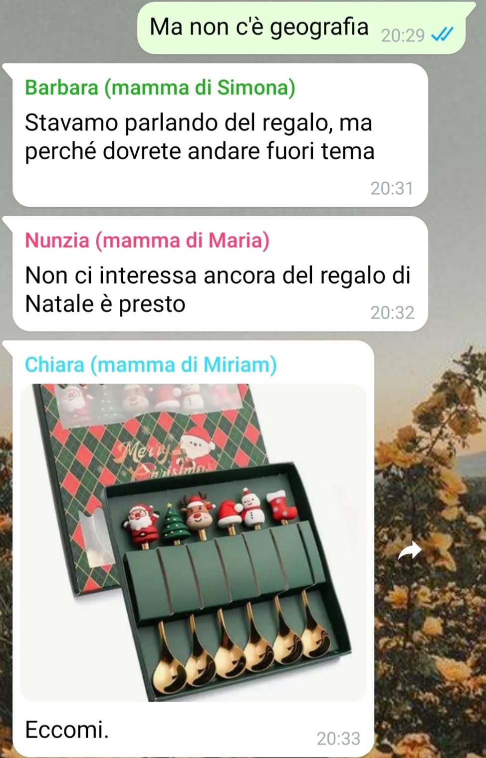 Questa volta, il tema di discussione è stata la scelta del regalo da fare alle maestre. Come ogni anno, trovare un accordo tra tutte le mamme si è rivelato un’impresa complicata. La diversità di opinioni e idee ha generato discussioni animate, mettendo in evidenza quanto possa essere difficile accontentare tutti in un contesto del genere.