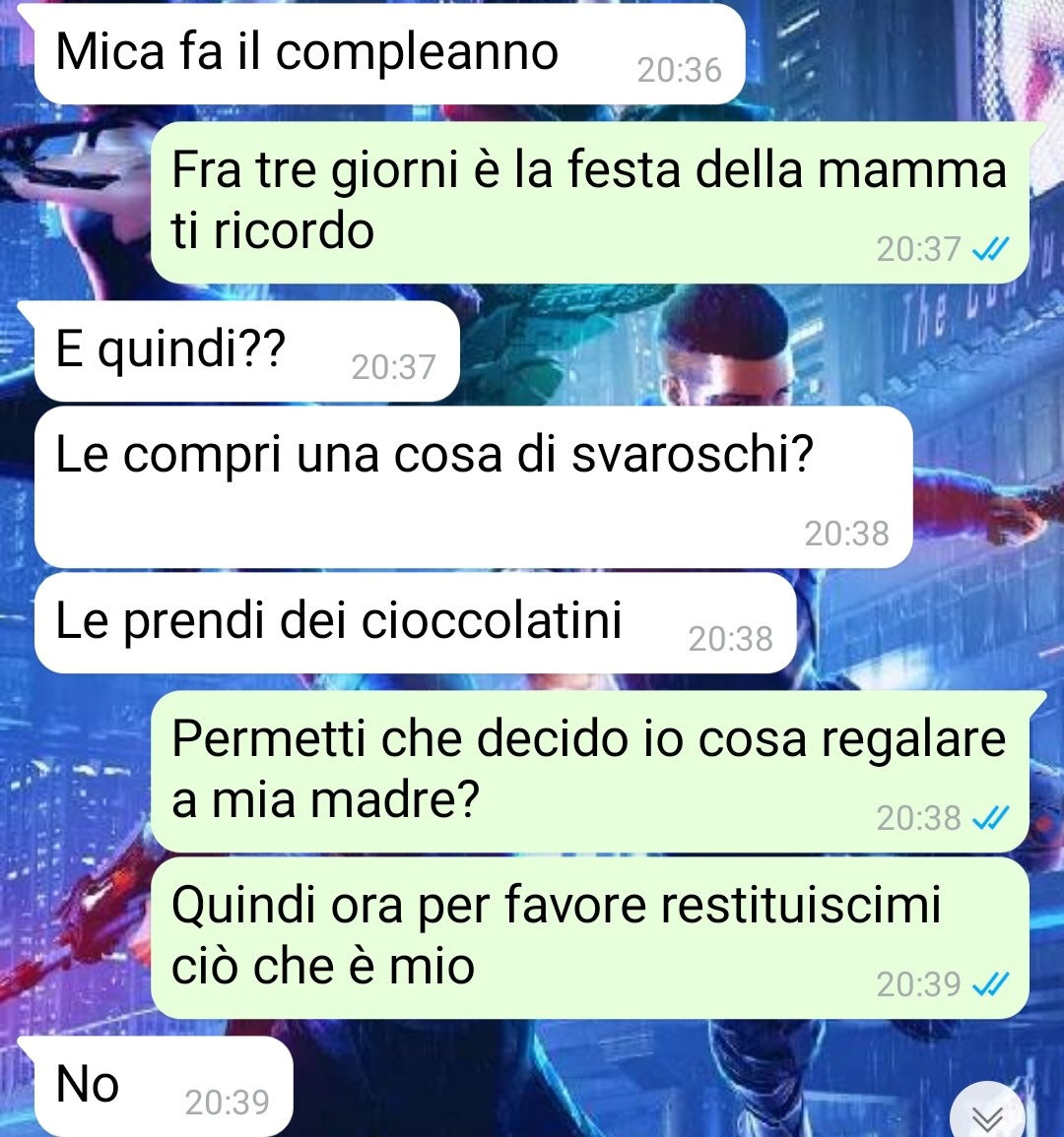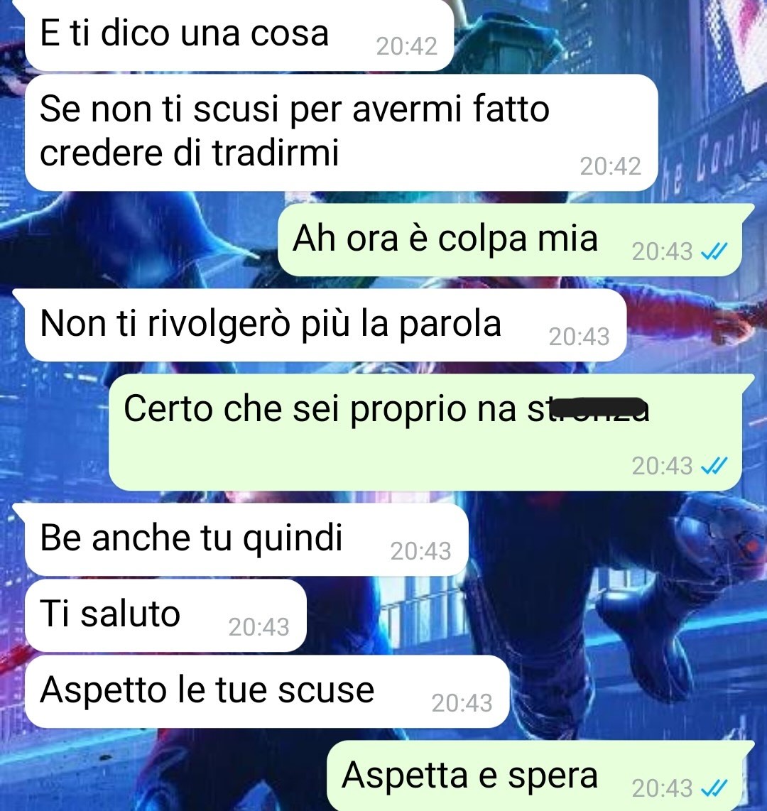 Il motivo? Secondo lei, se si trattava di un regalo da donna, non poteva che essere per qualcun’altra di “sospetto”. Da lì, il passo verso la sfuriata è stato breve. Matteo racconta che quello che più lo infastidisce è l’atteggiamento possessivo della compagna: l’idea, secondo lui, che tutto ciò che gli appartiene debba in automatico essere anche suo, dai pensieri alle attenzioni, fino ai regali.