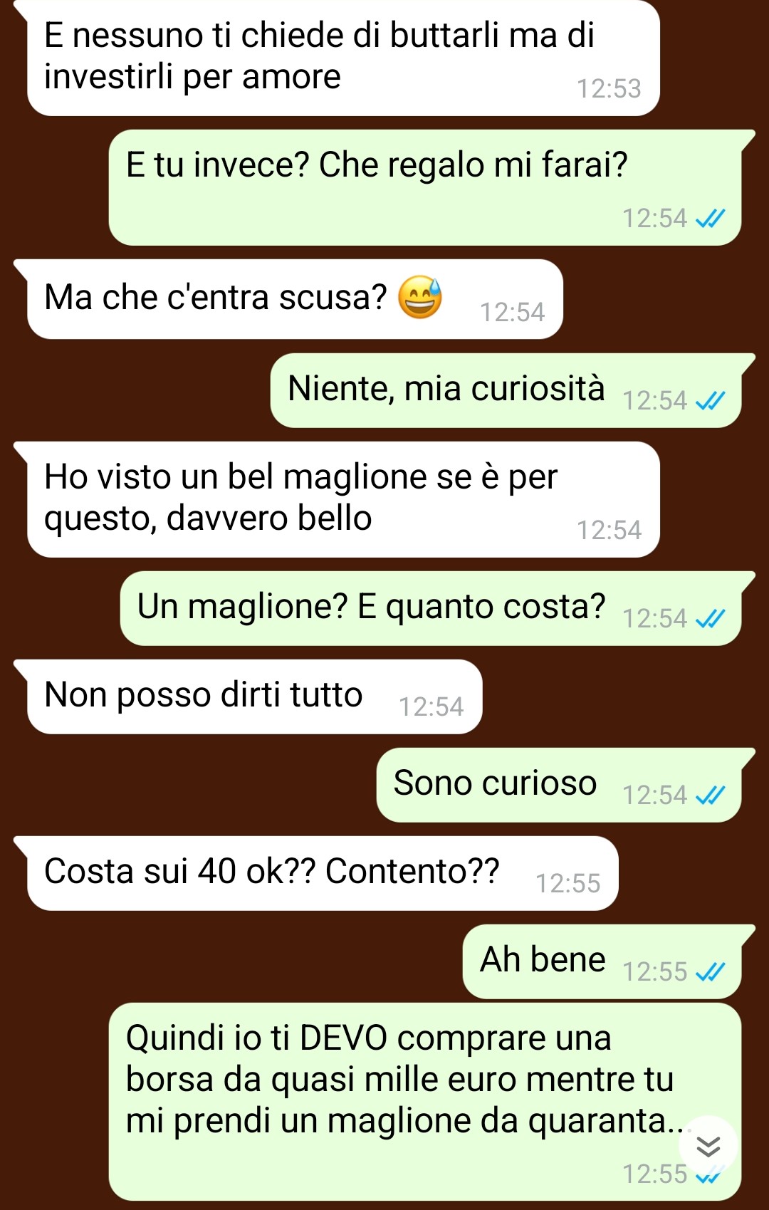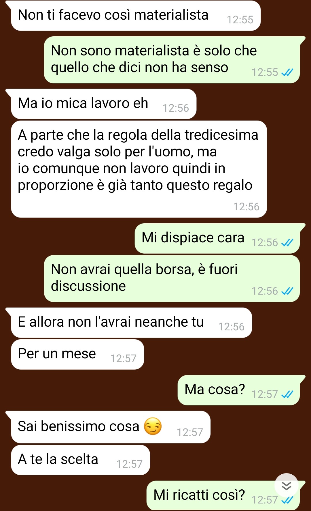 Il problema è sorto quando, nonostante fossero ancora a novembre, la fidanzata gli ha scritto comunicandogli apertamente e direttamente cosa avrebbe voluto come regalo di Natale. Il follower specifica che anche questo aspetto potrebbe essere accettabile, se non fosse per il modo particolare in cui la ragazza si è espressa e soprattutto per la natura del regalo richiesto, che descrive come decisamente irraggiungibile per le sue possibilità economiche. La situazione ha creato un evidente imbarazzo nel nostro amico, che si trova a dover gestire una richiesta che va oltre le sue disponibilità finanziarie.