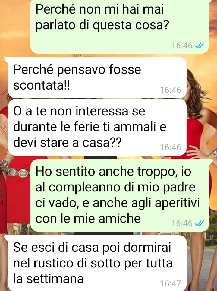 La nostra fan ha condiviso i messaggi tra loro per mostrare cosa esattamente le è stato chiesto, colpita dal fatto che un semplice evento familiare – il compleanno del padre – abbia scatenato un tale problema. Si domanda come abbia fatto a non notare prima certi aspetti del carattere del suo compagno, e chiede se davvero sia la sola a imbattersi in situazioni tanto assurde.