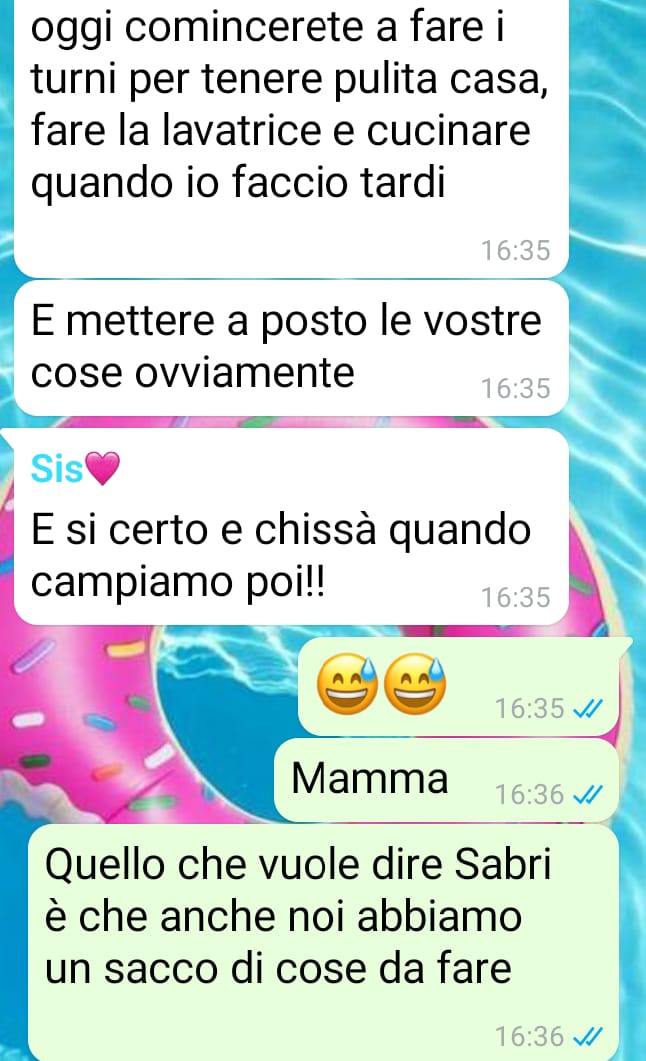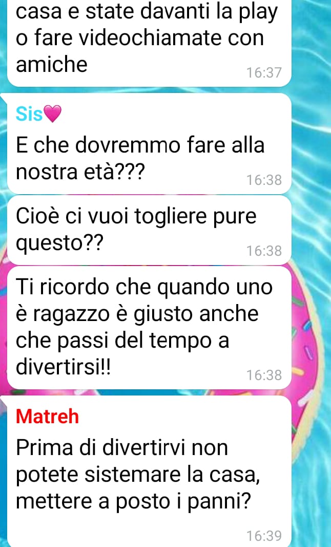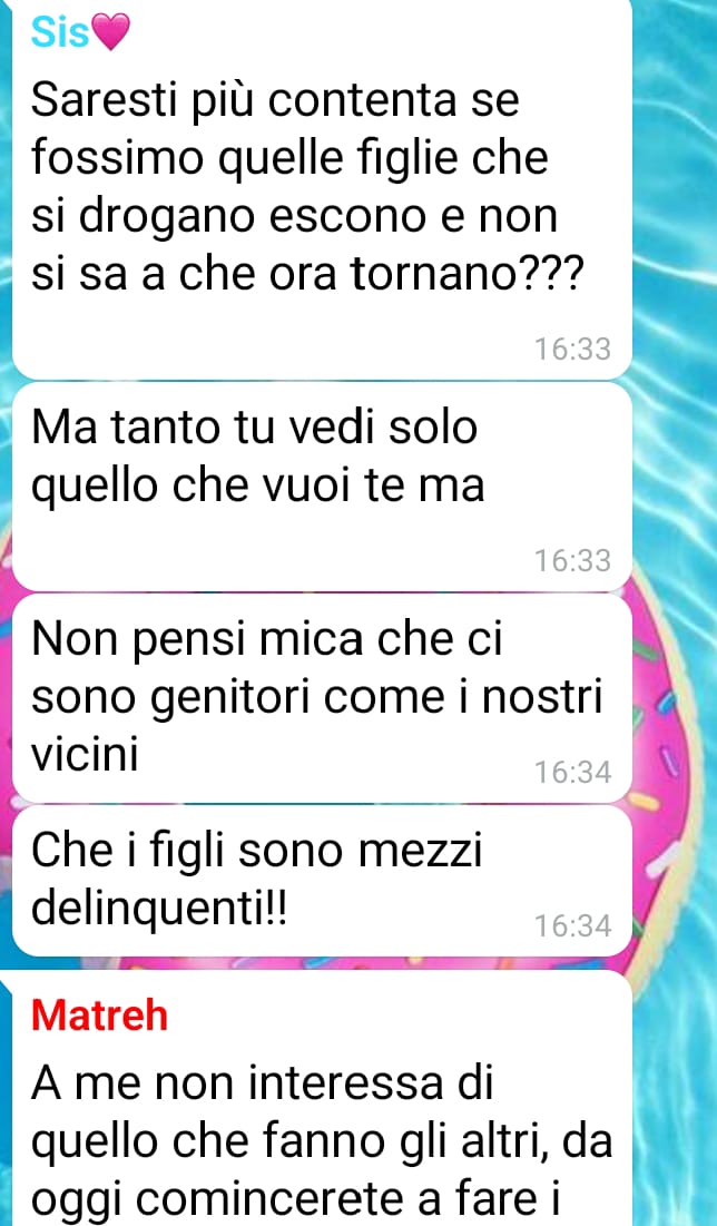 La nostra fan Isabella ha deciso di condividere con noi una situazione familiare tesa che si è venuta a creare negli ultimi giorni tra lei, la madre e la sorella più piccola, con cui vive. Racconta che, a causa di una discussione nata all’interno del gruppo di famiglia su WhatsApp, l’atmosfera in casa è diventata così pesante che spesso preferisce restare in silenzio per evitare ulteriori conflitti.