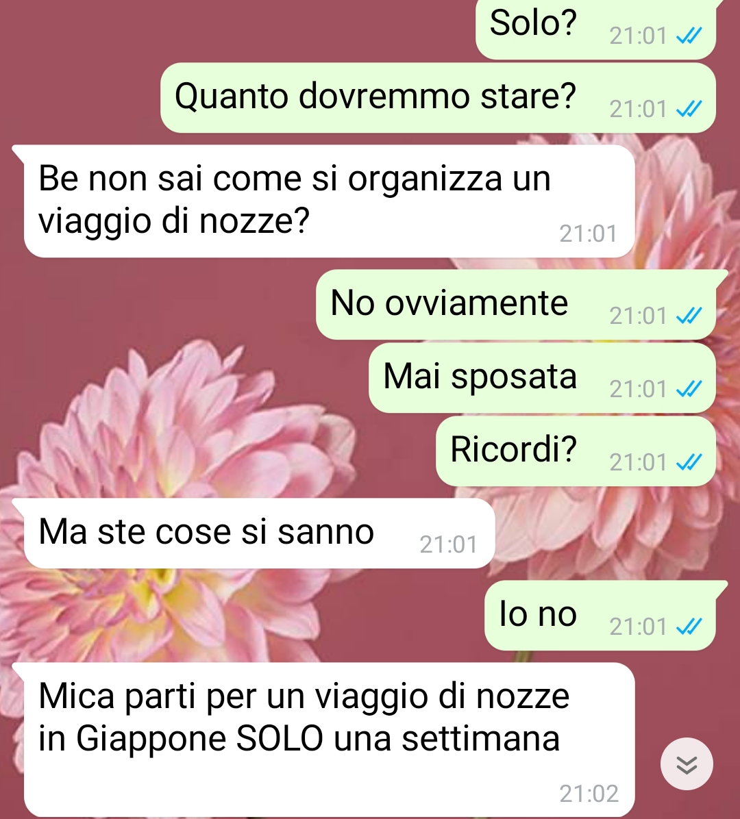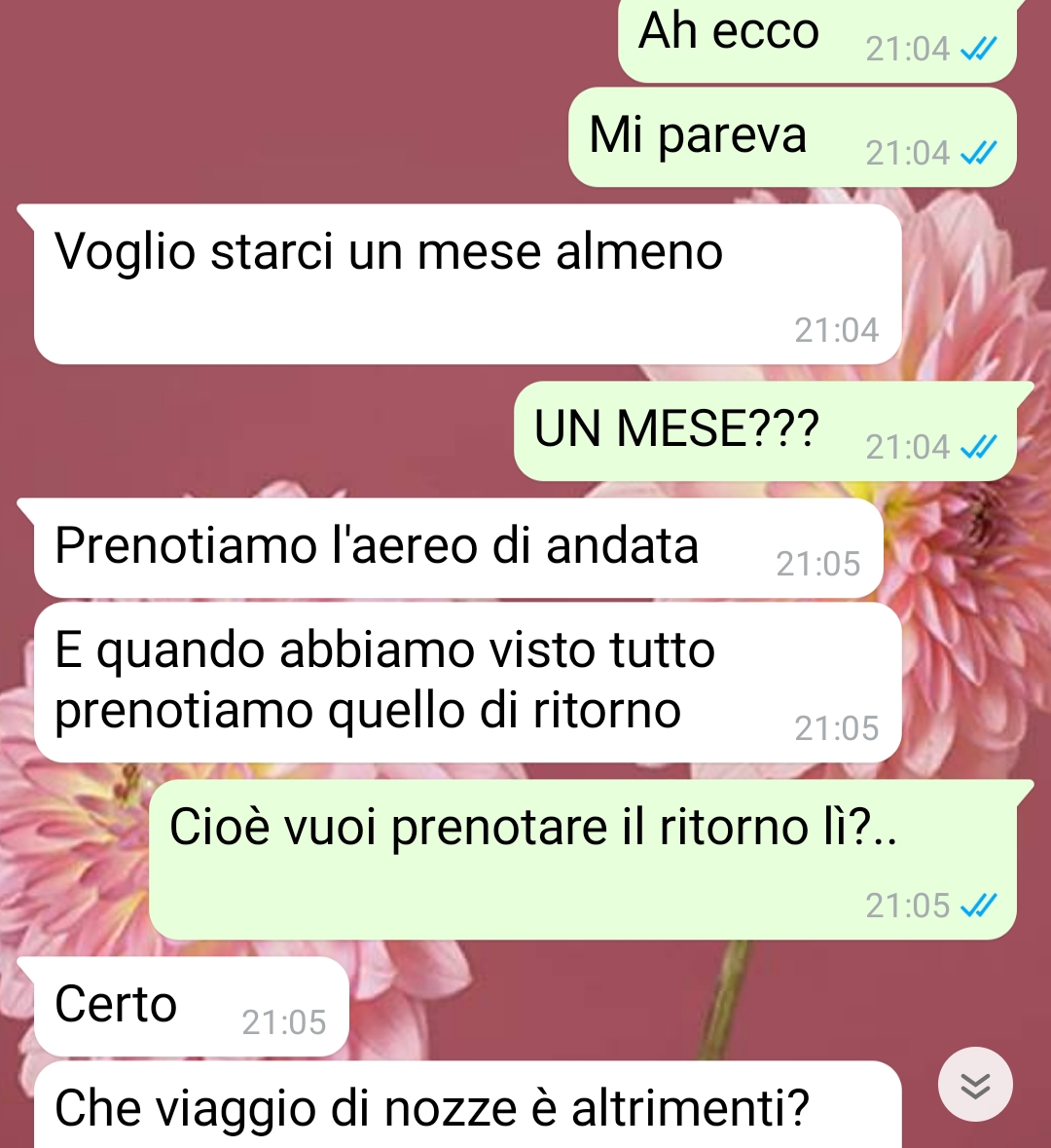 La follower precisa di non essere la classica sposa ossessionata dai dettagli o desiderosa di catalizzare ogni attenzione su di sé. Non si riconosce nell’immagine della futura moglie ansiosa per ogni minimo imprevisto. Il suo racconto non riguarda capricci o pretese superficiali, ma un aspetto che considera fondamentale: il viaggio di nozze.